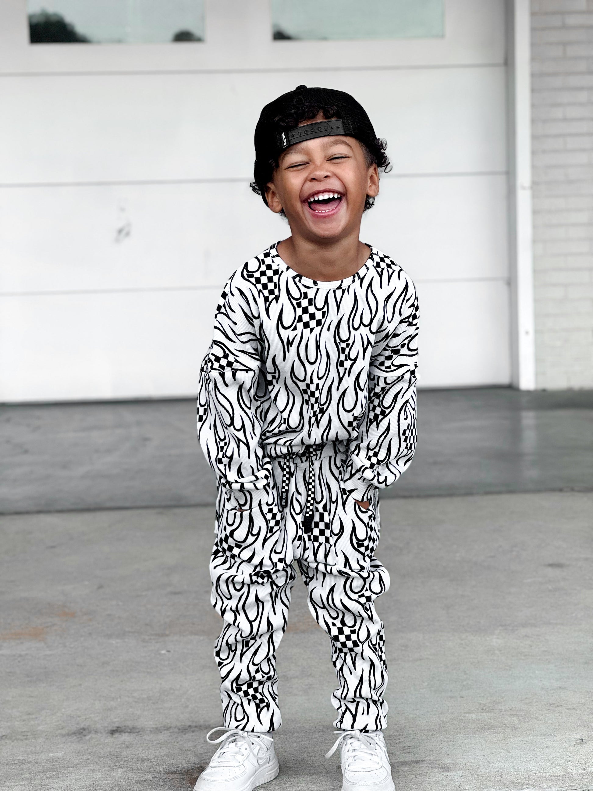 Our bestselling organic ribbed sets come with a long sleeve swoop rear top + jogger-style bottoms featuring : an elastic waist band, secured and adjustable drawstring and front pockets. Our organic cotton + spandex fabric is preshrunk to allow for the most true to size fit possible — even after laundering.
