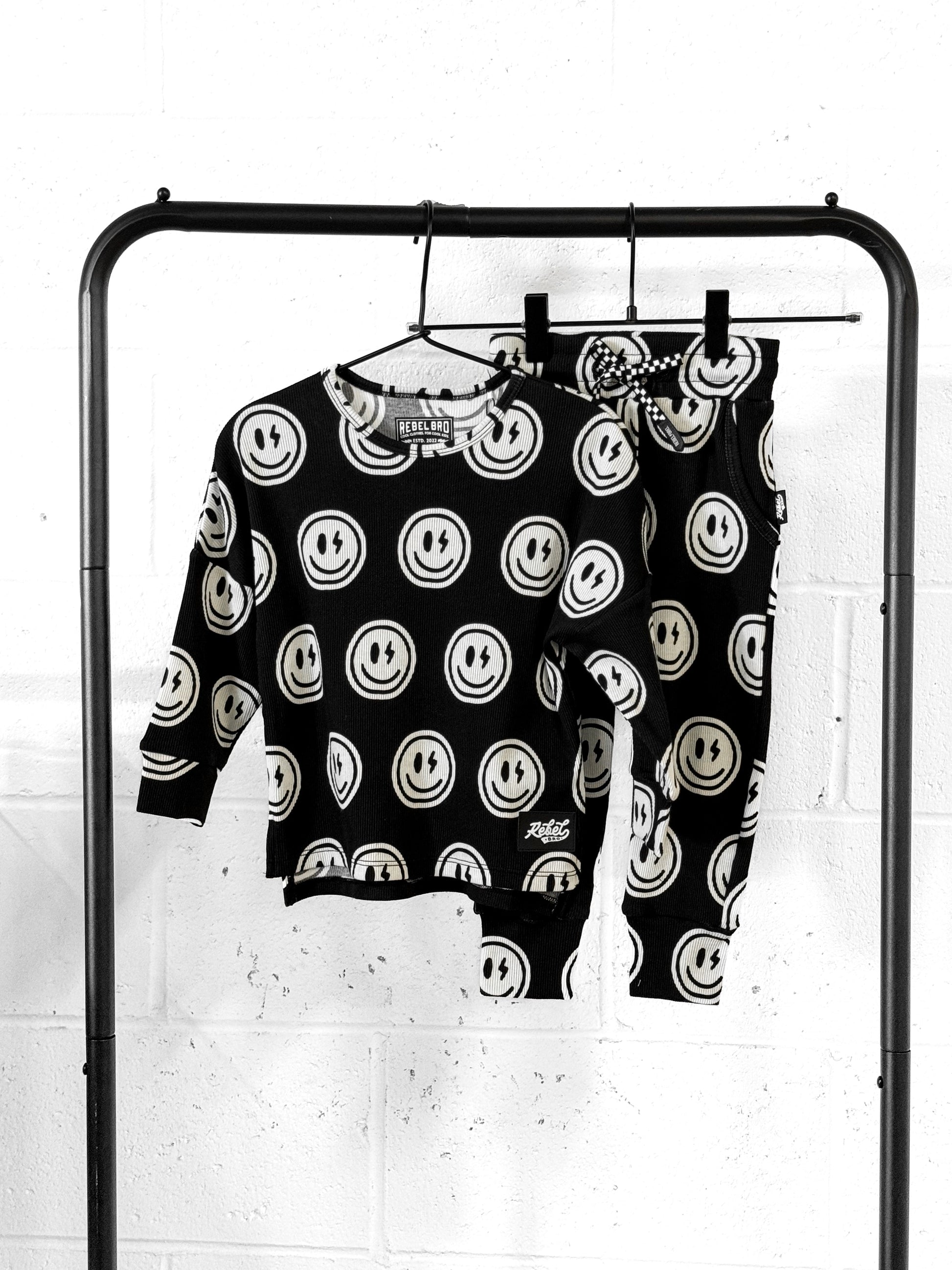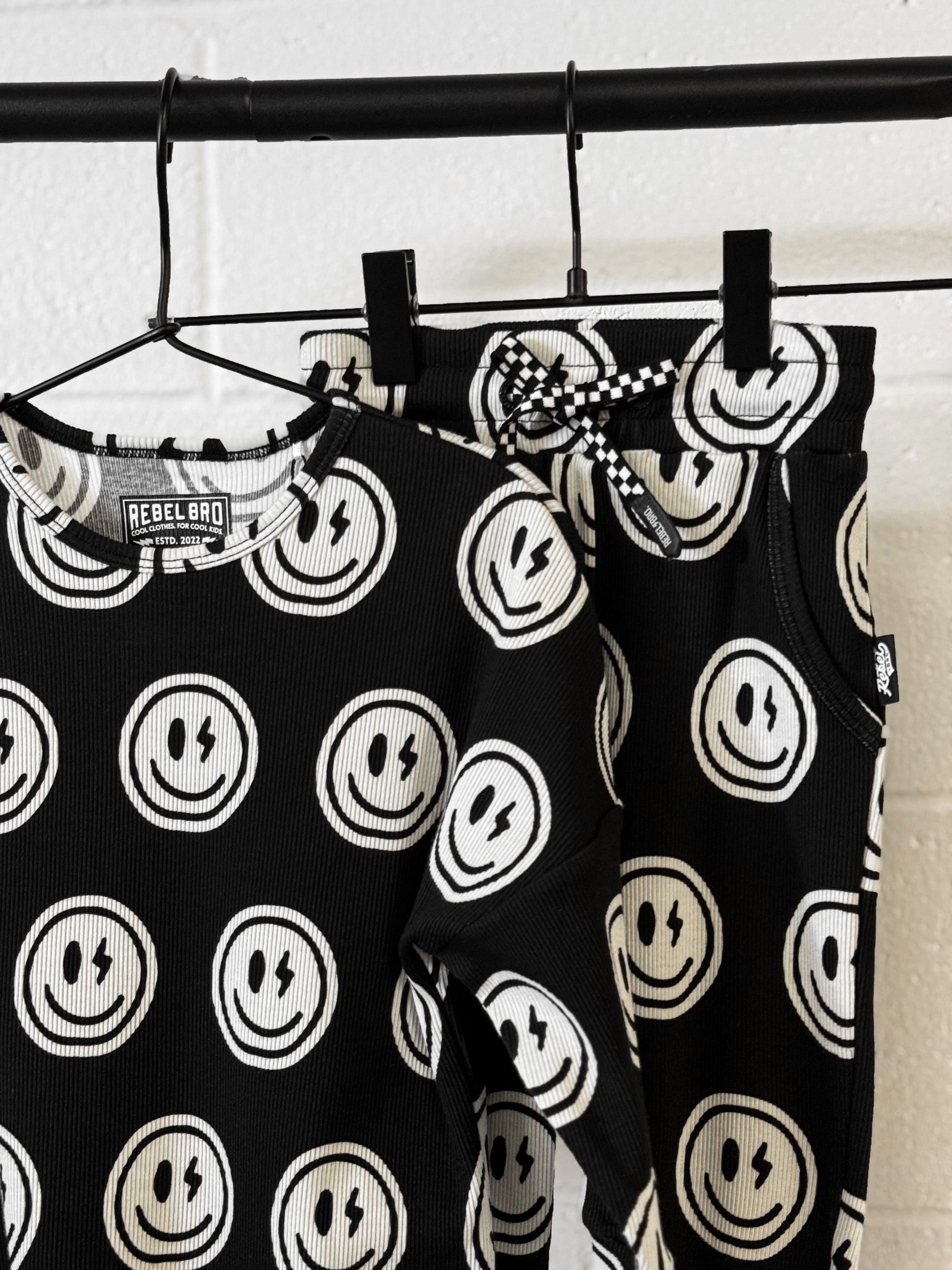 Our bestselling organic ribbed sets come with a long sleeve swoop rear top + jogger-style bottoms featuring : an elastic waist band, secured and adjustable drawstring and front pockets. Our organic cotton + spandex fabric is preshrunk to allow for the most true to size fit possible — even after laundering.
