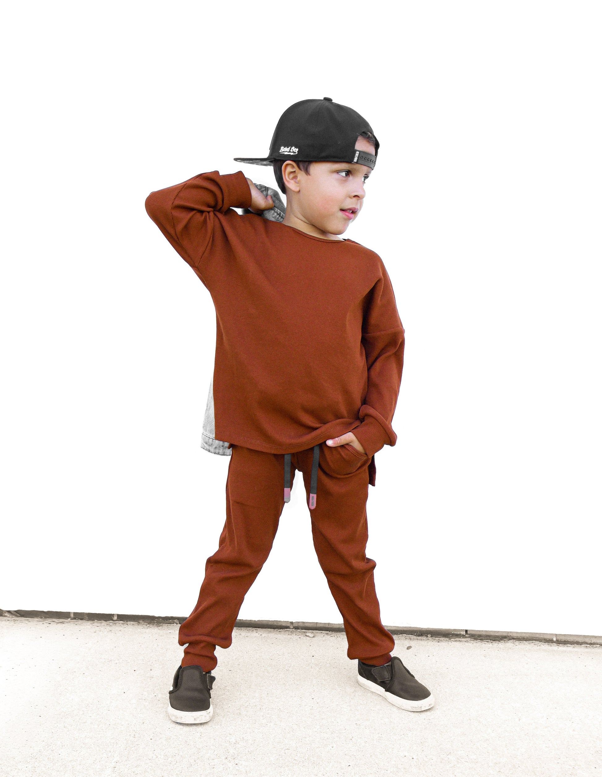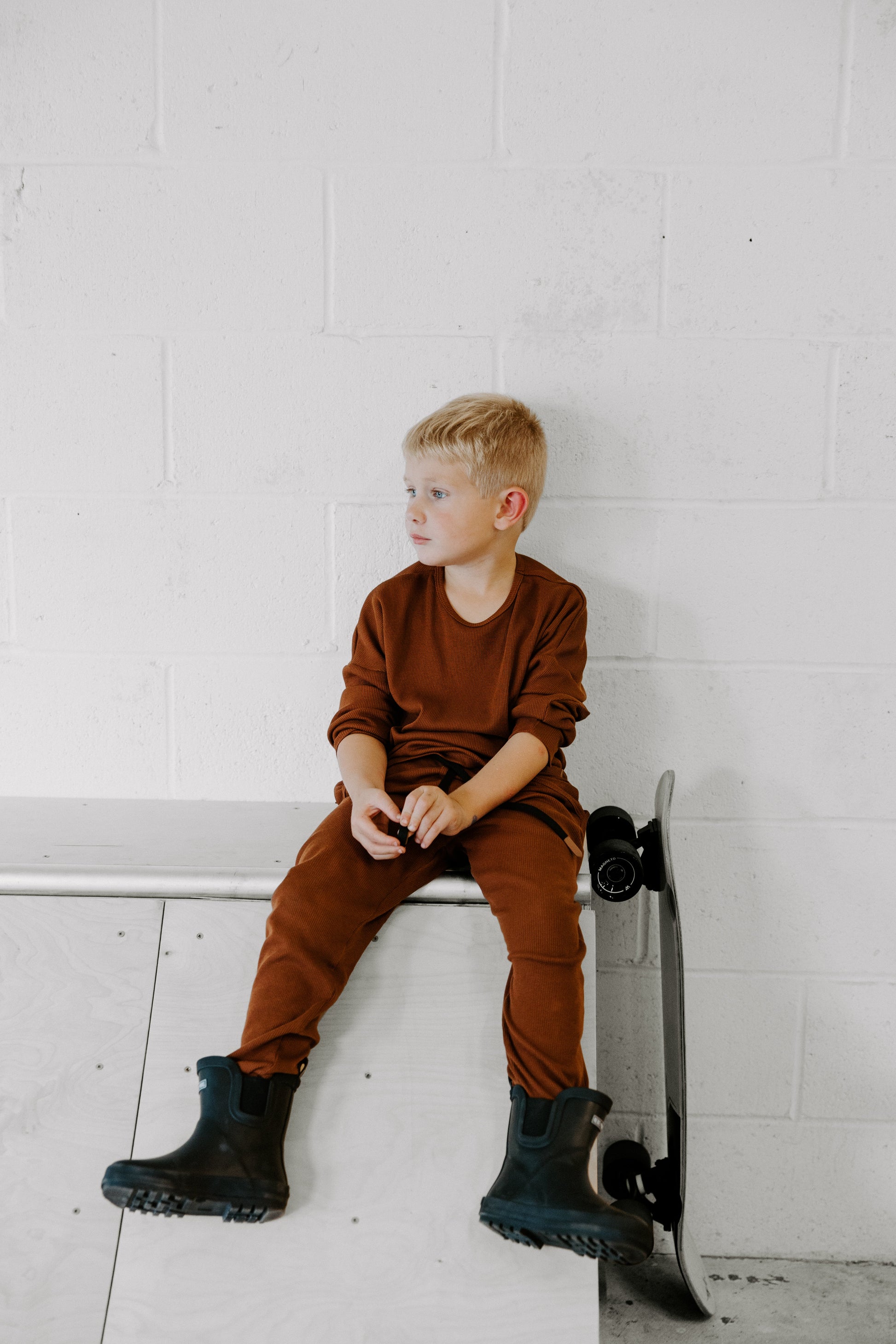 Organic Ribbed Set in Rust