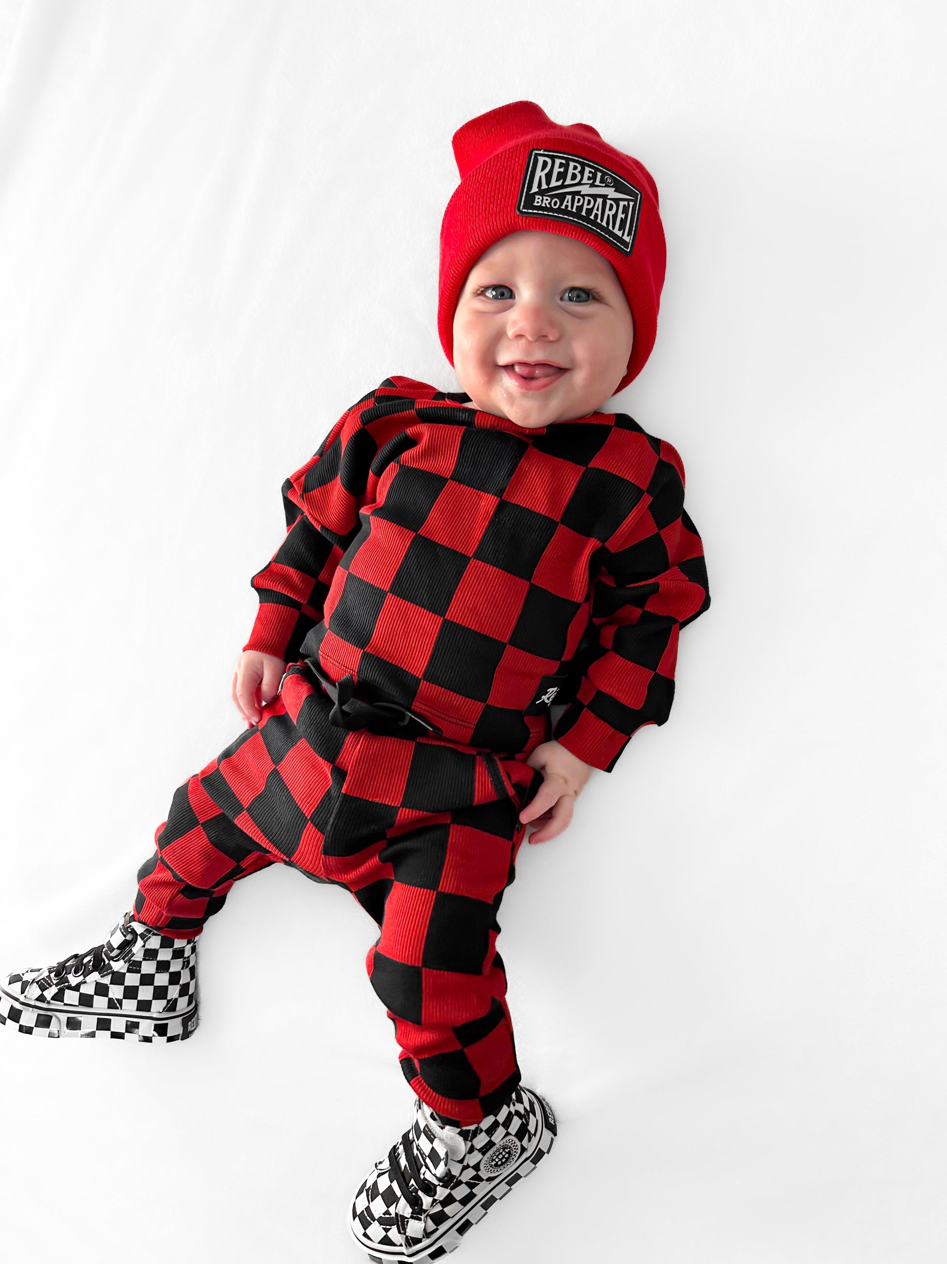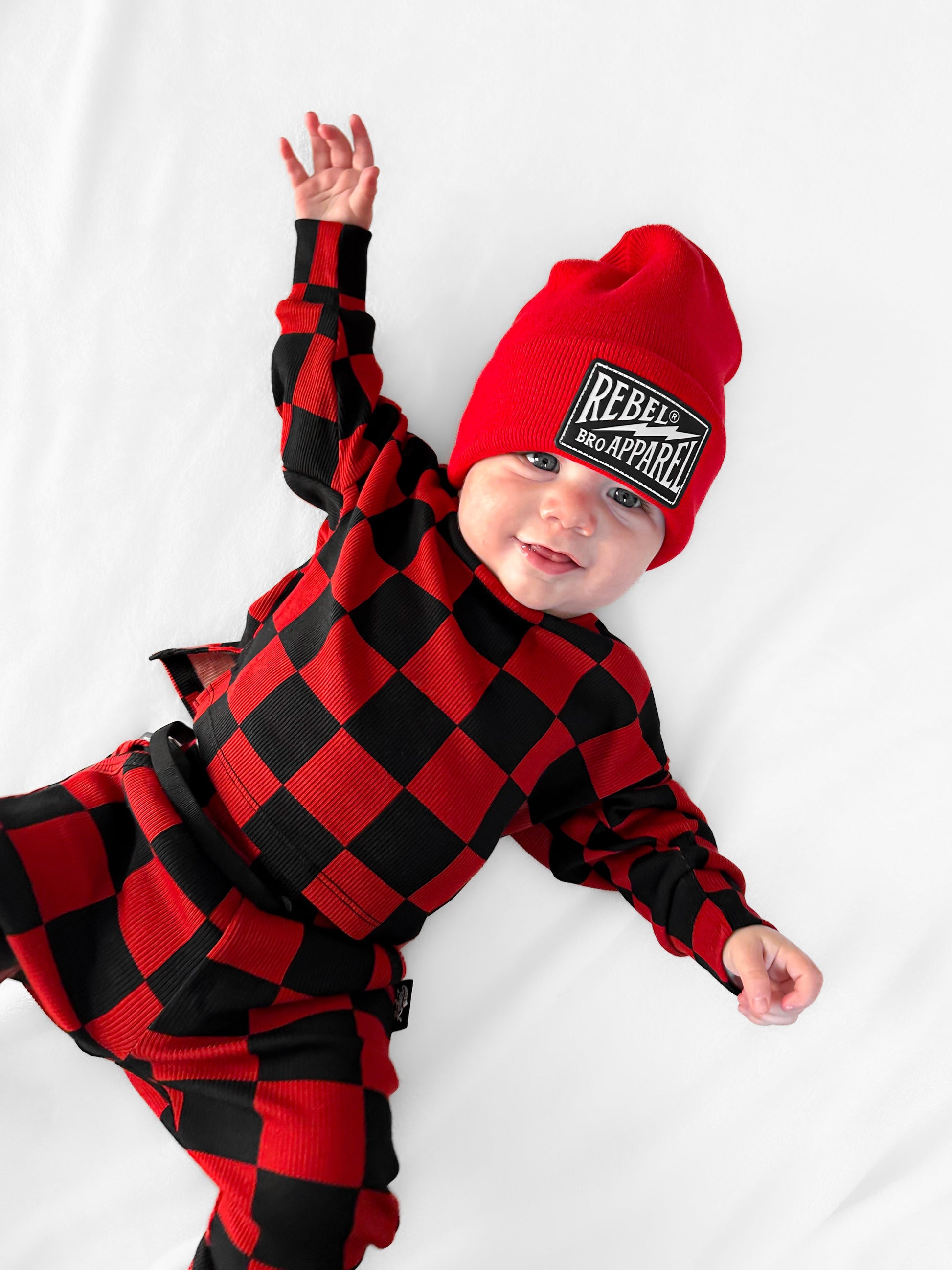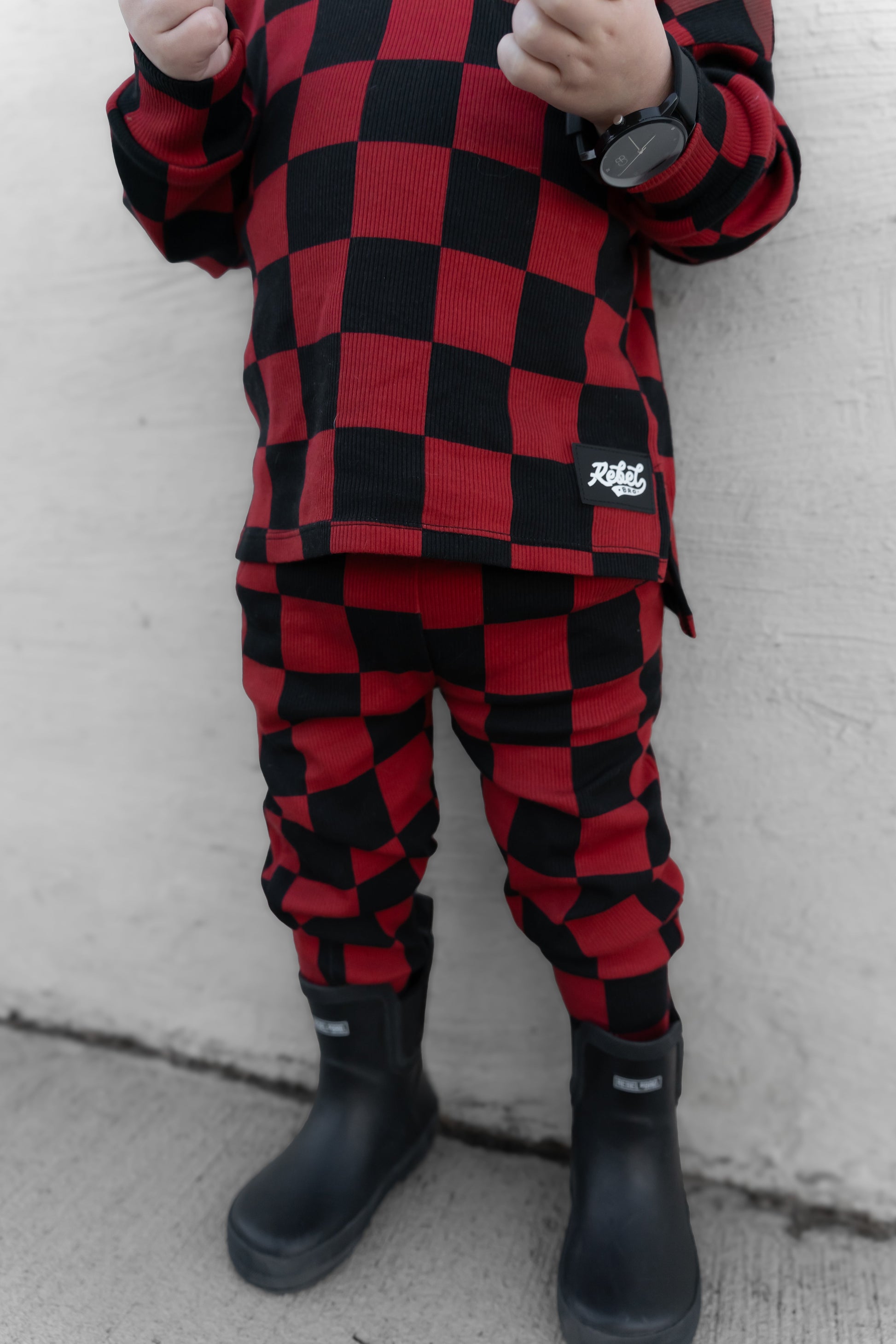 Organic Ribbed Set in Smoke + Crimson
