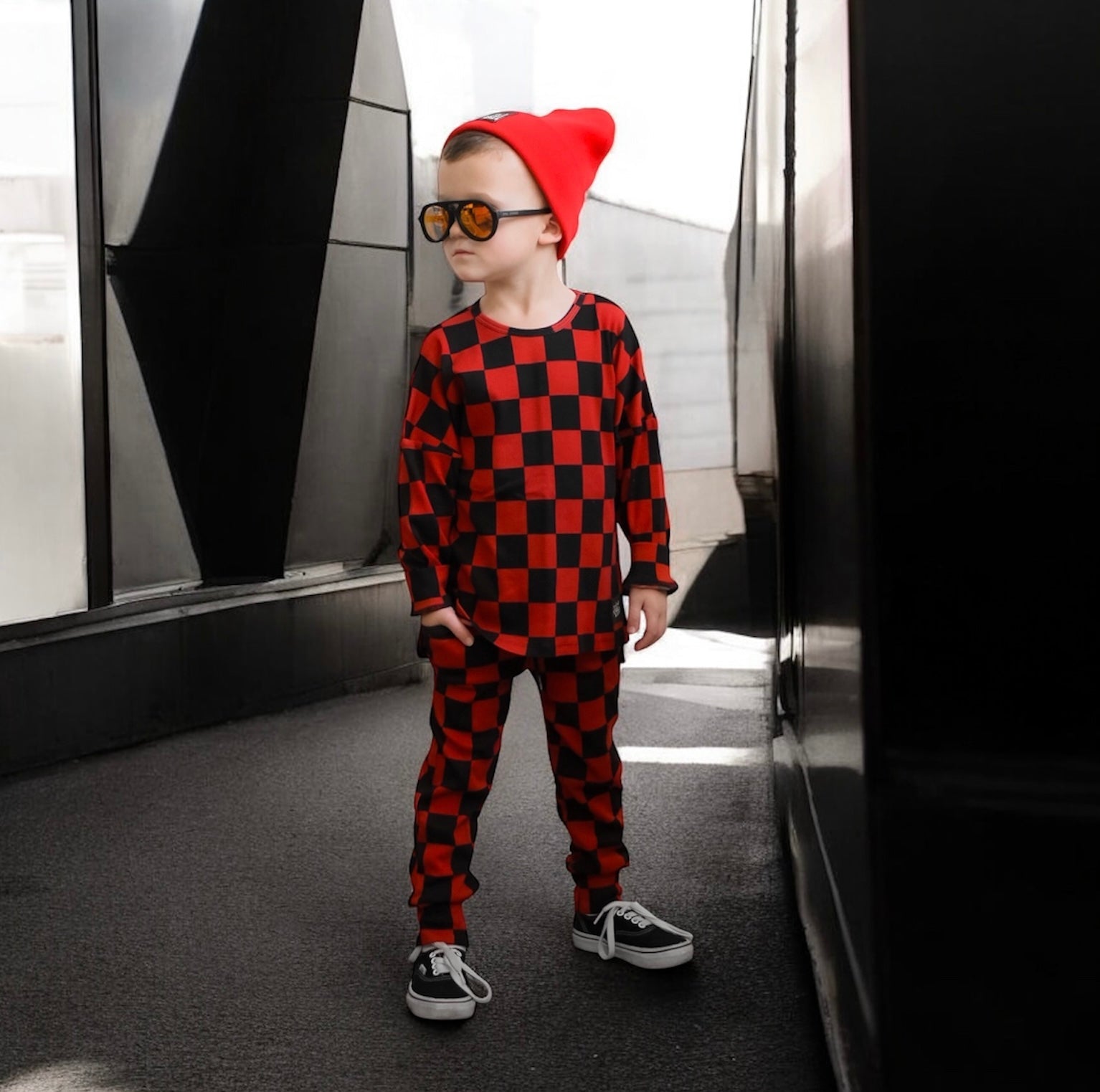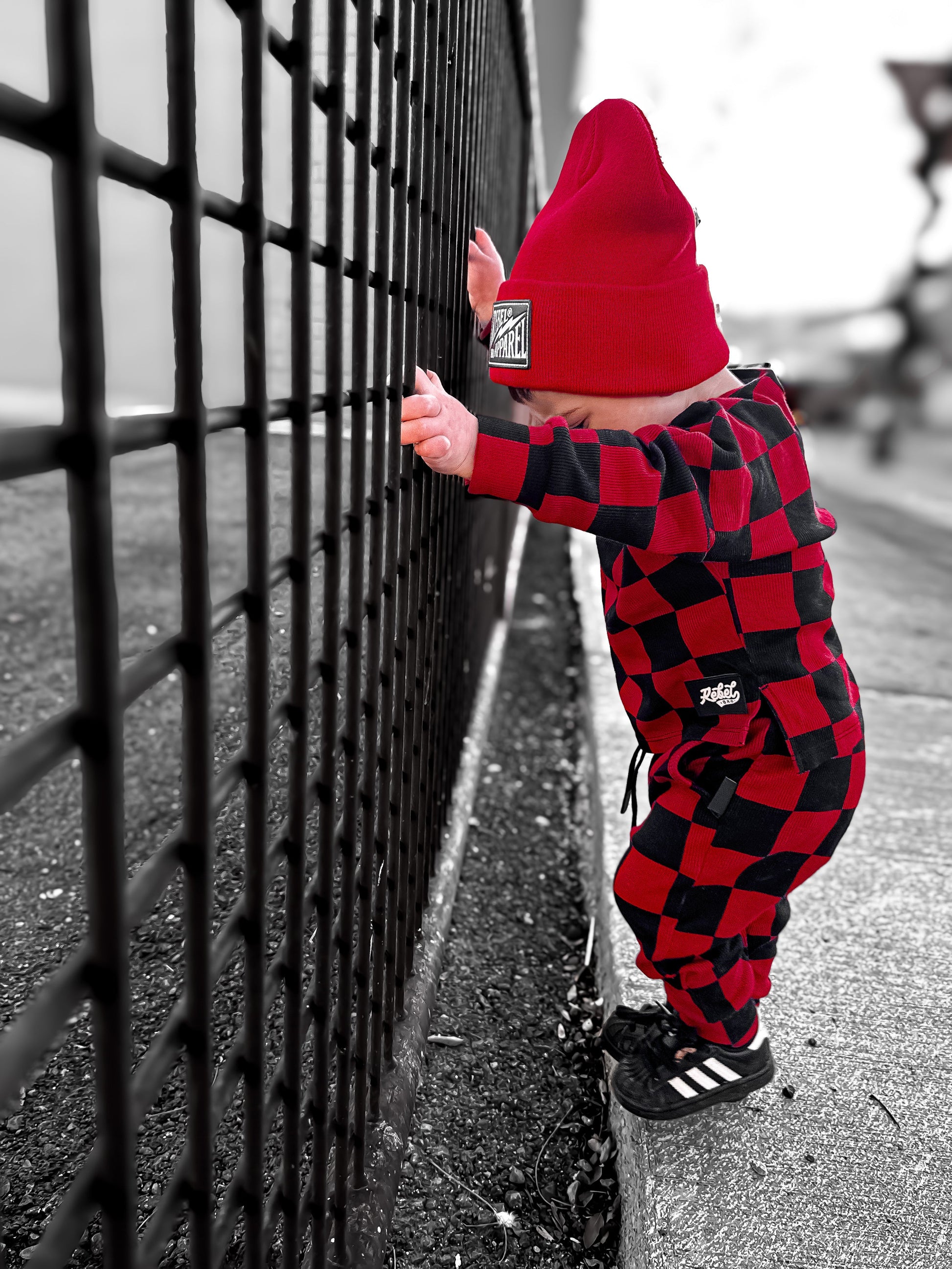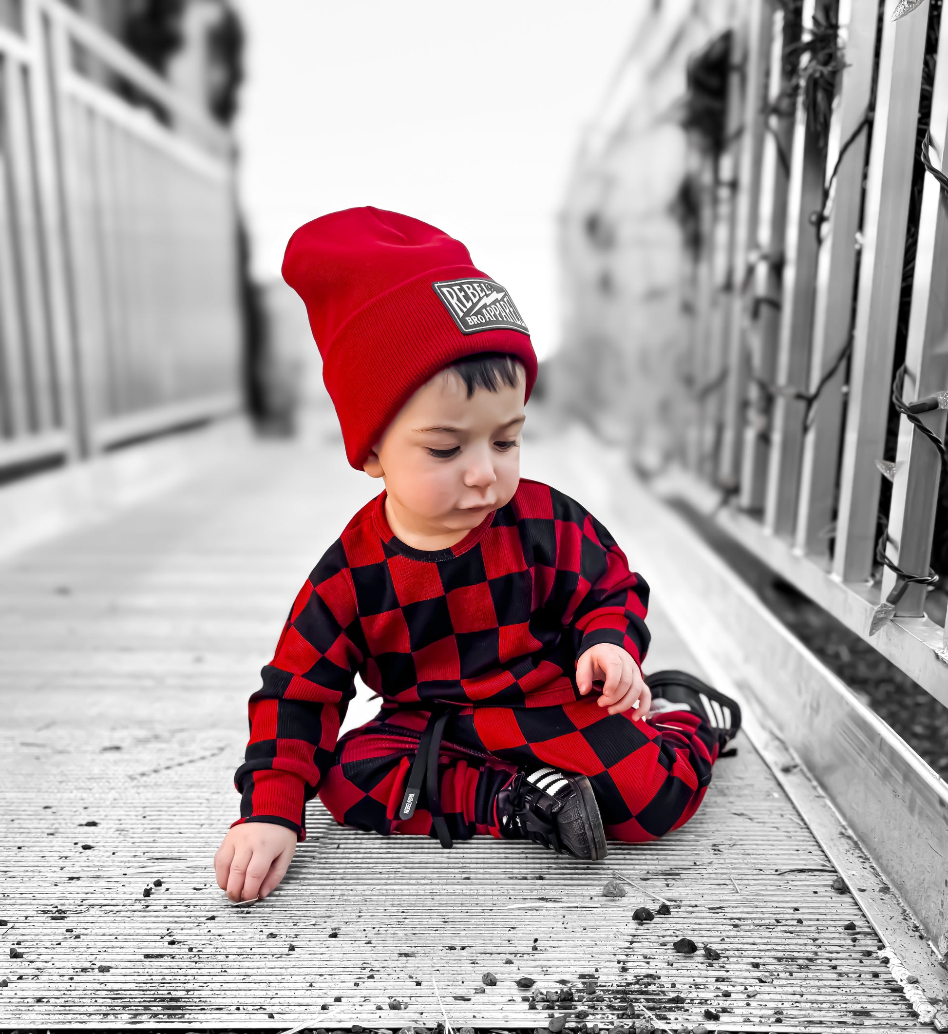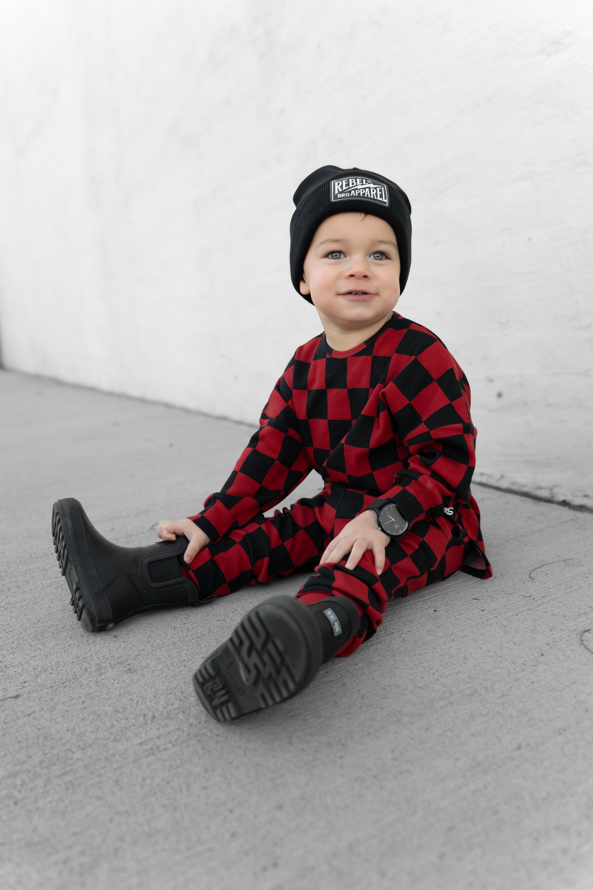 Organic Ribbed Set in Smoke + Crimson