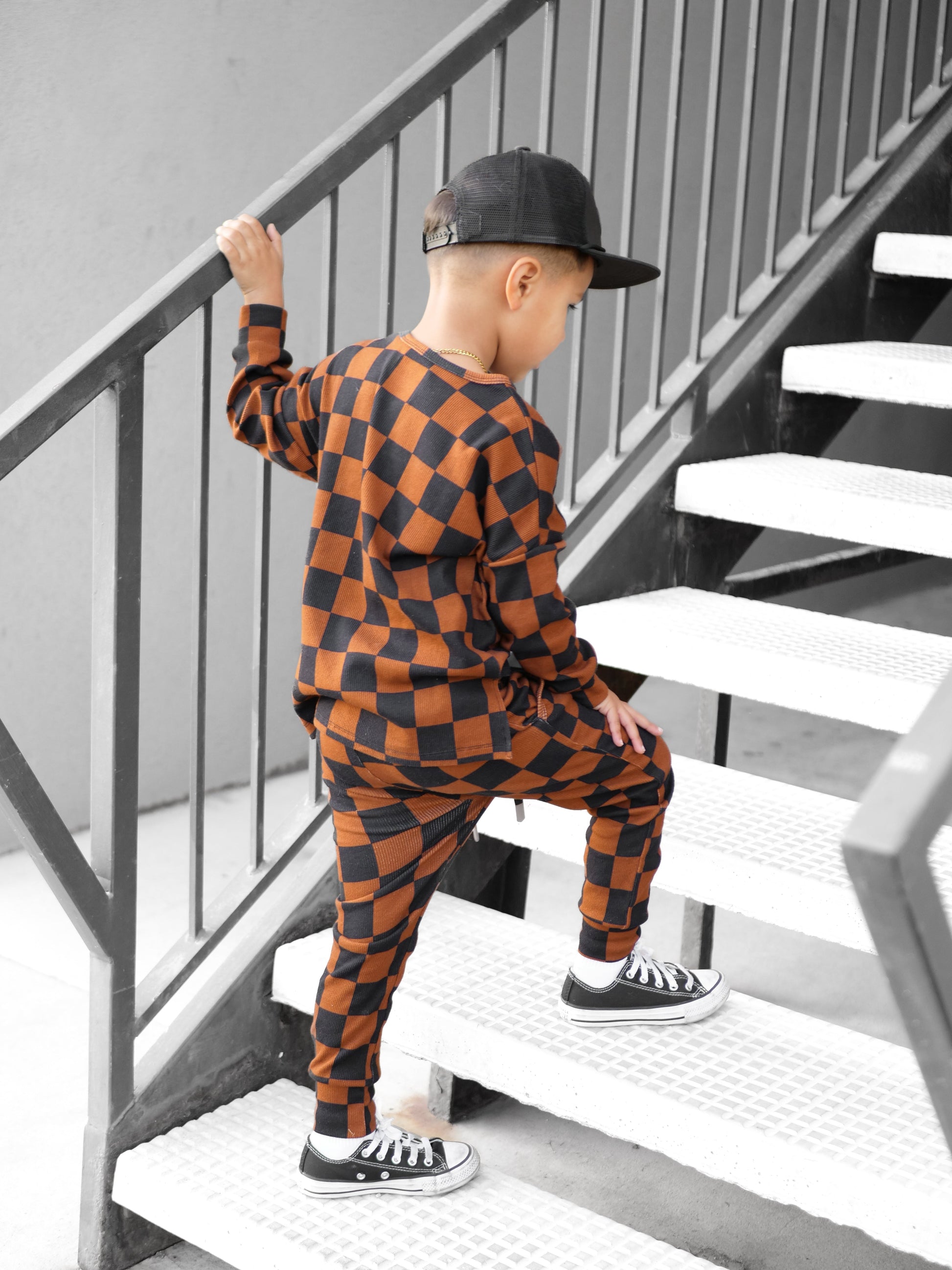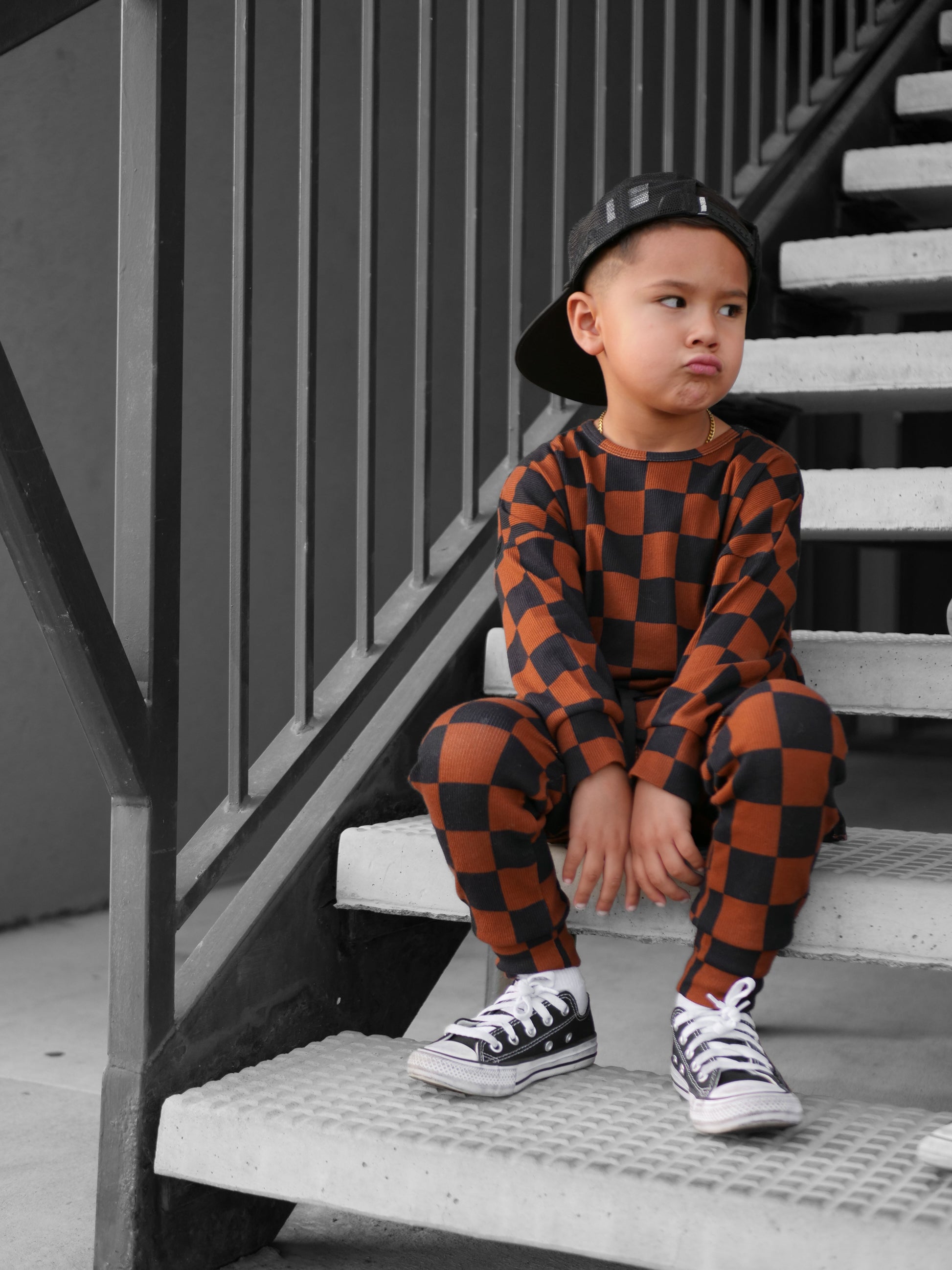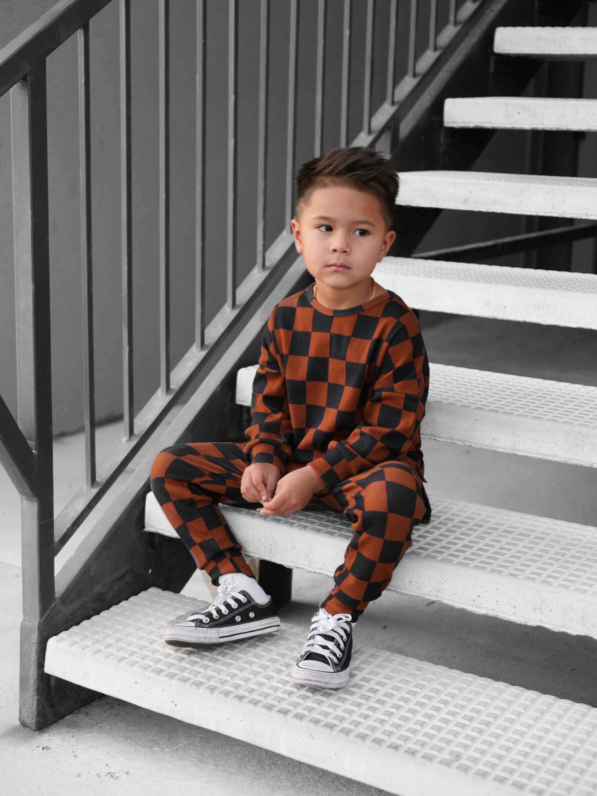 Organic Ribbed Set in Smoke + Spice
