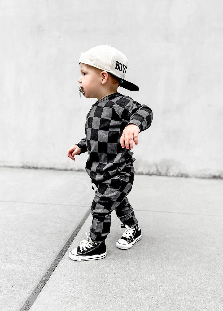 Organic Ribbed Set in Smoke + Storm