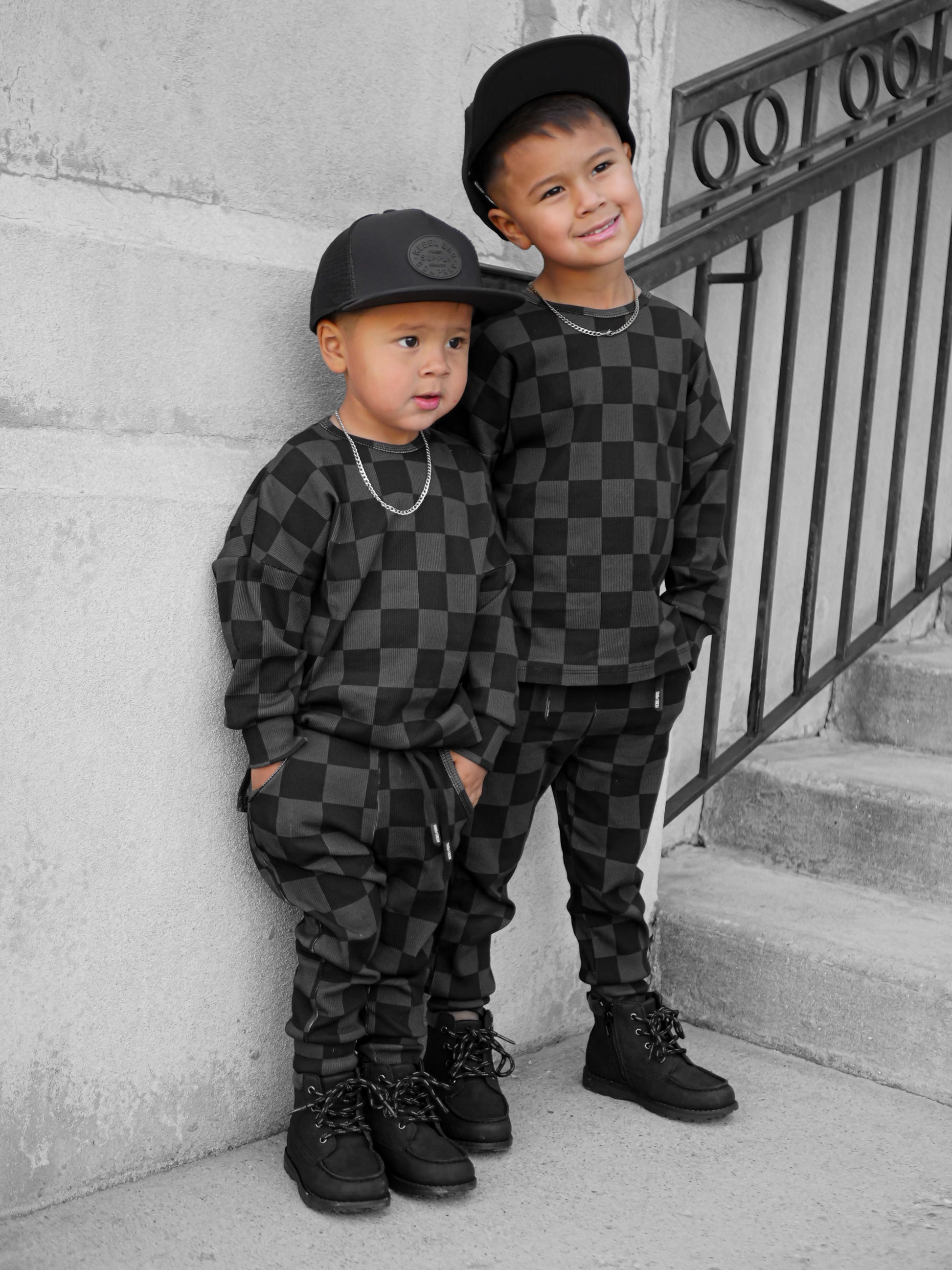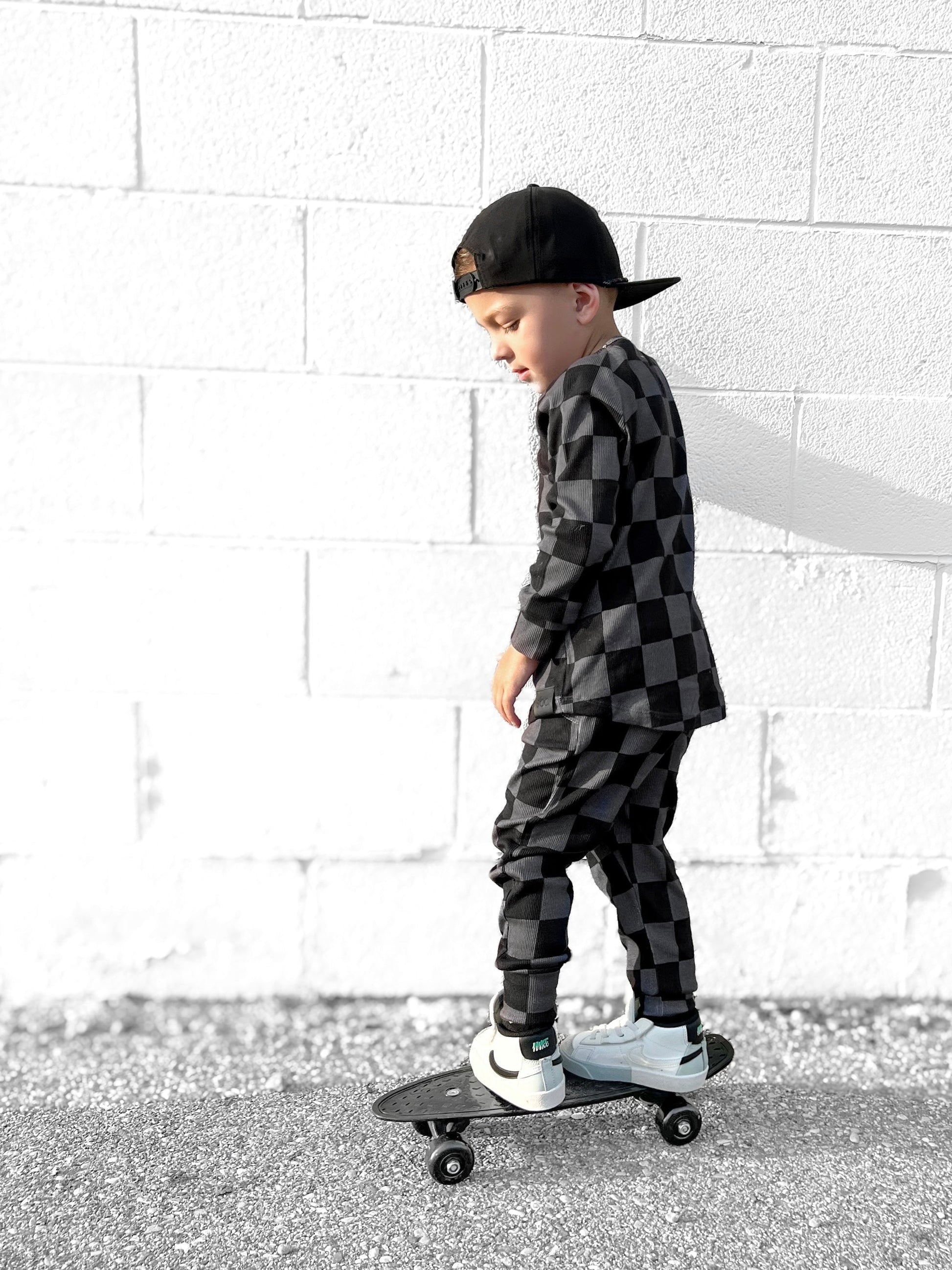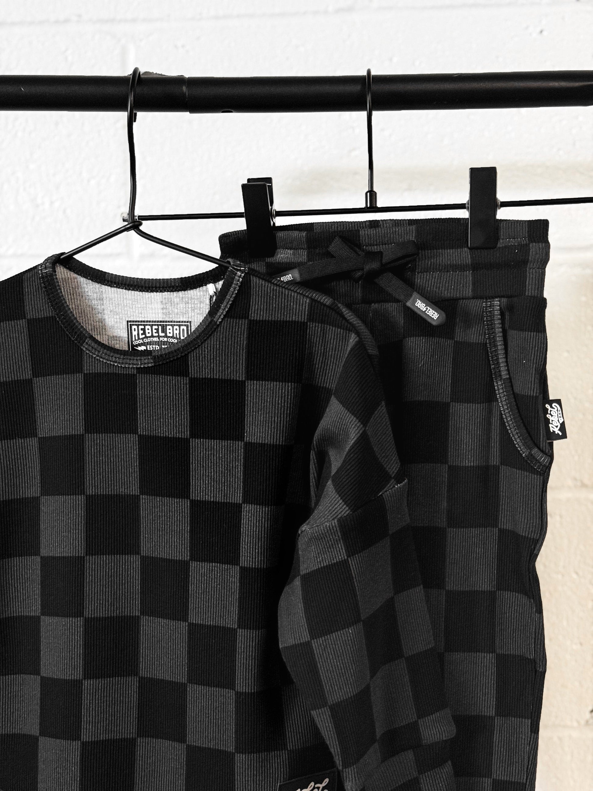 Our bestselling organic ribbed sets come with a long sleeve swoop rear top + jogger-style bottoms featuring : an elastic waist band, secured and adjustable drawstring and front pockets. Our organic cotton + spandex fabric is preshrunk to allow for the most true to size fit possible — even after laundering.