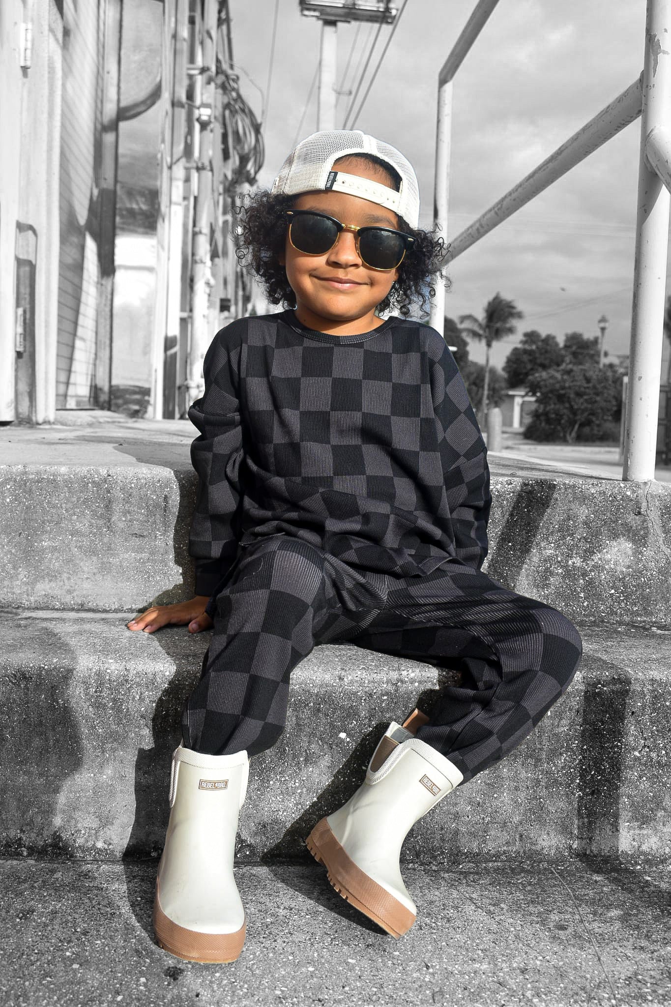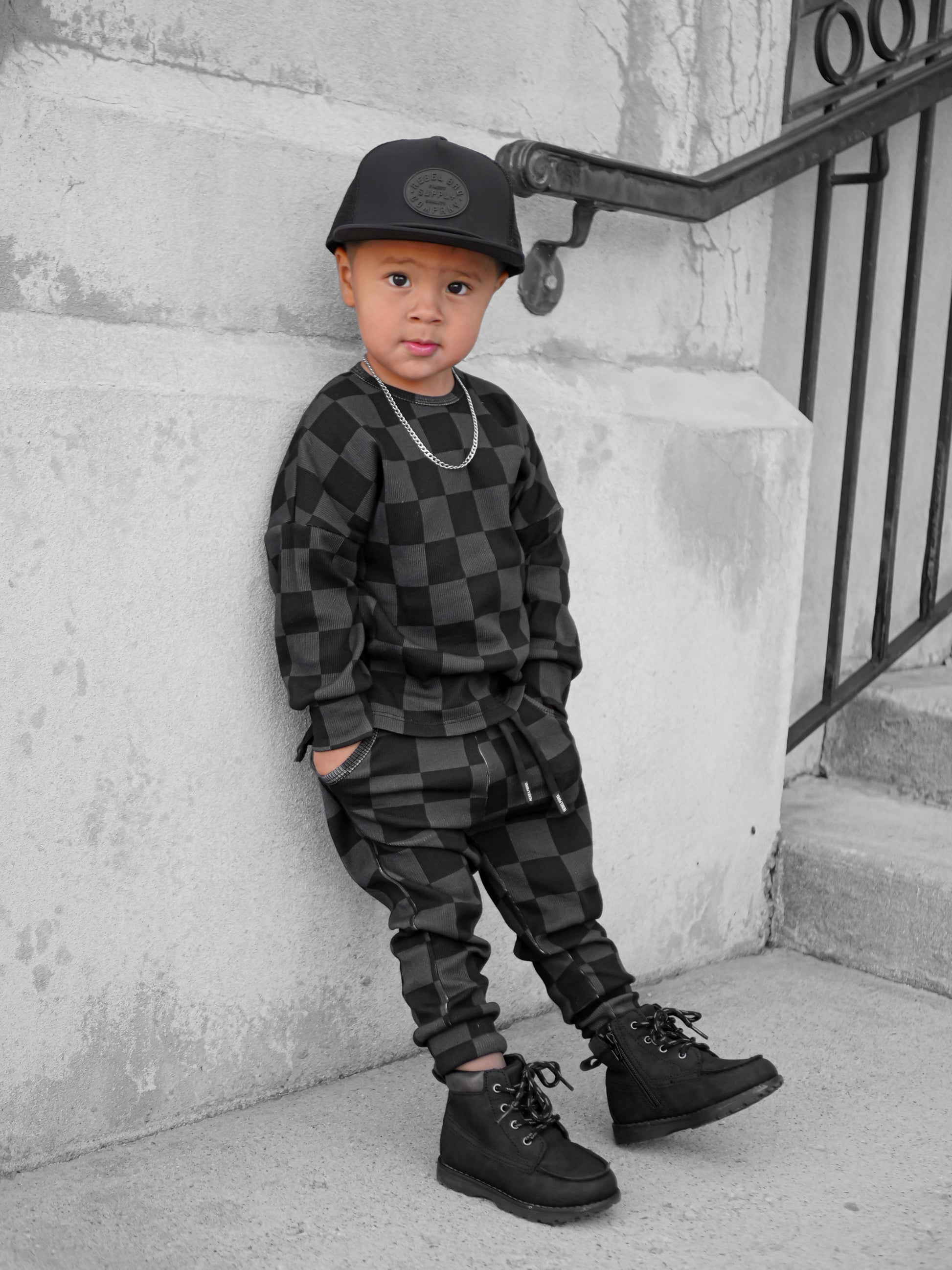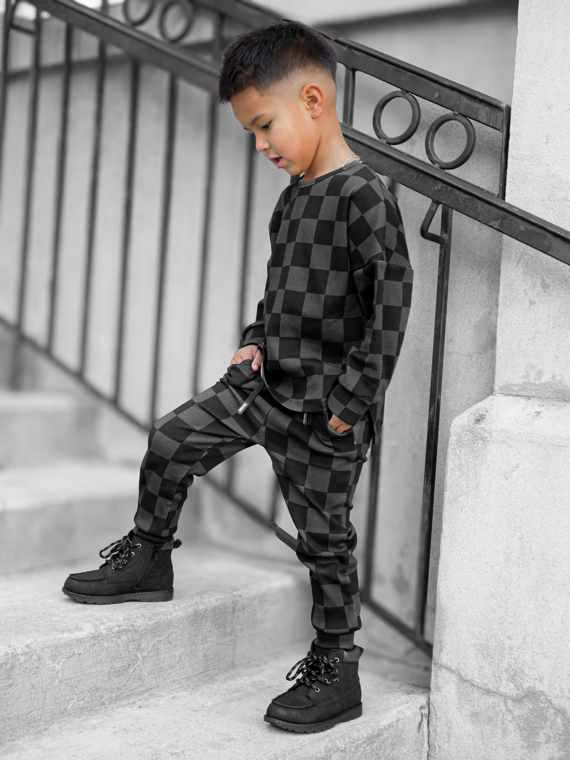 Our bestselling organic ribbed sets come with a long sleeve swoop rear top + jogger-style bottoms featuring : an elastic waist band, secured and adjustable drawstring and front pockets. Our organic cotton + spandex fabric is preshrunk to allow for the most true to size fit possible — even after laundering.