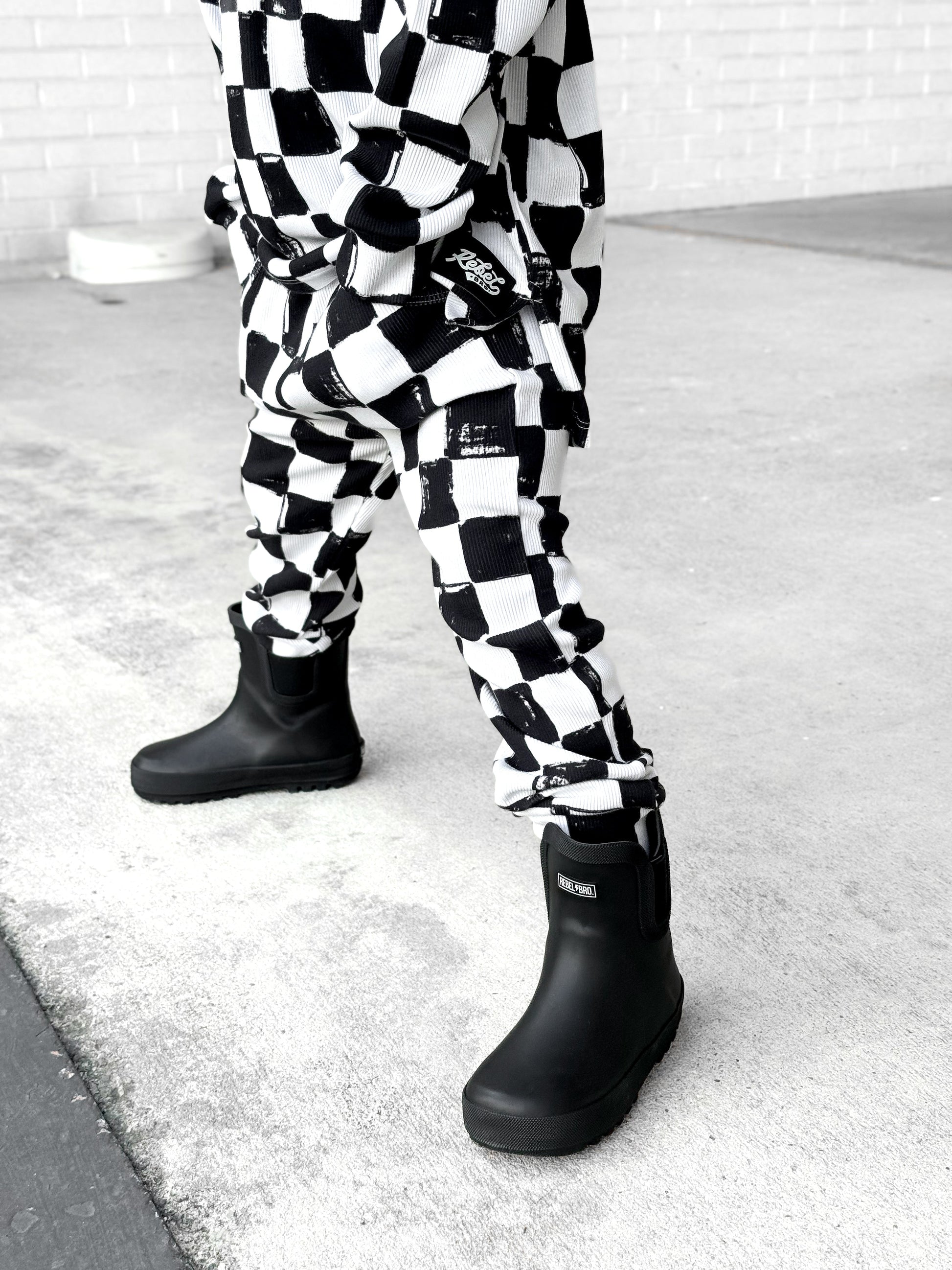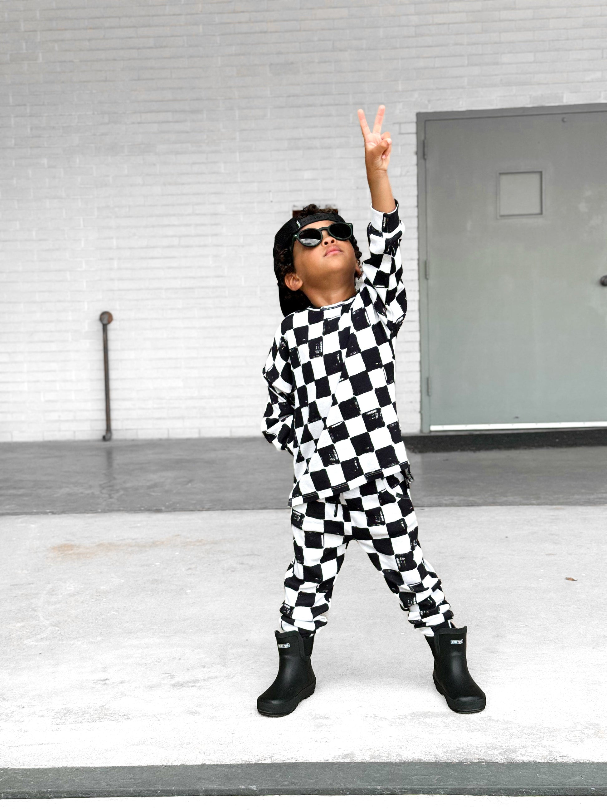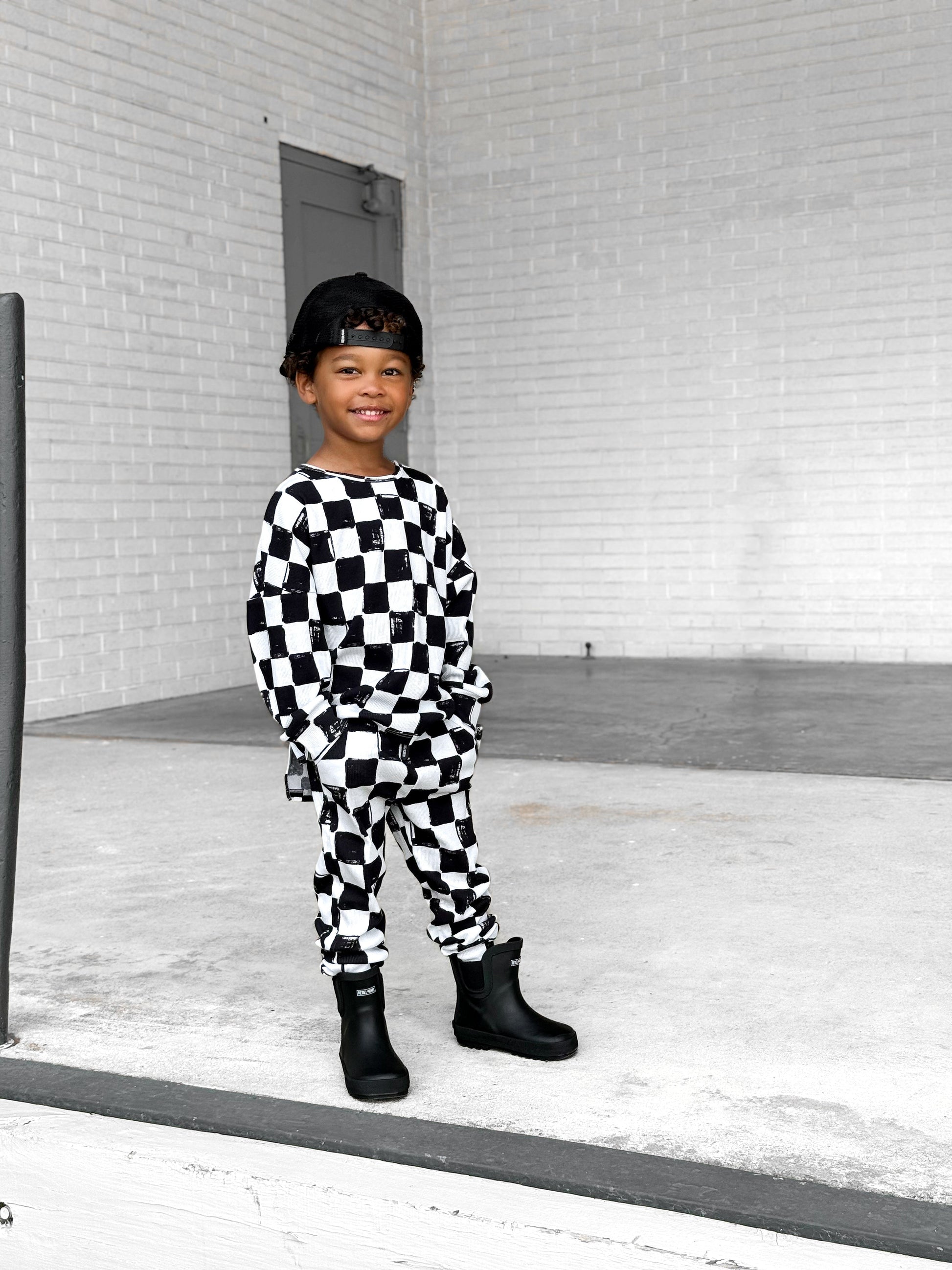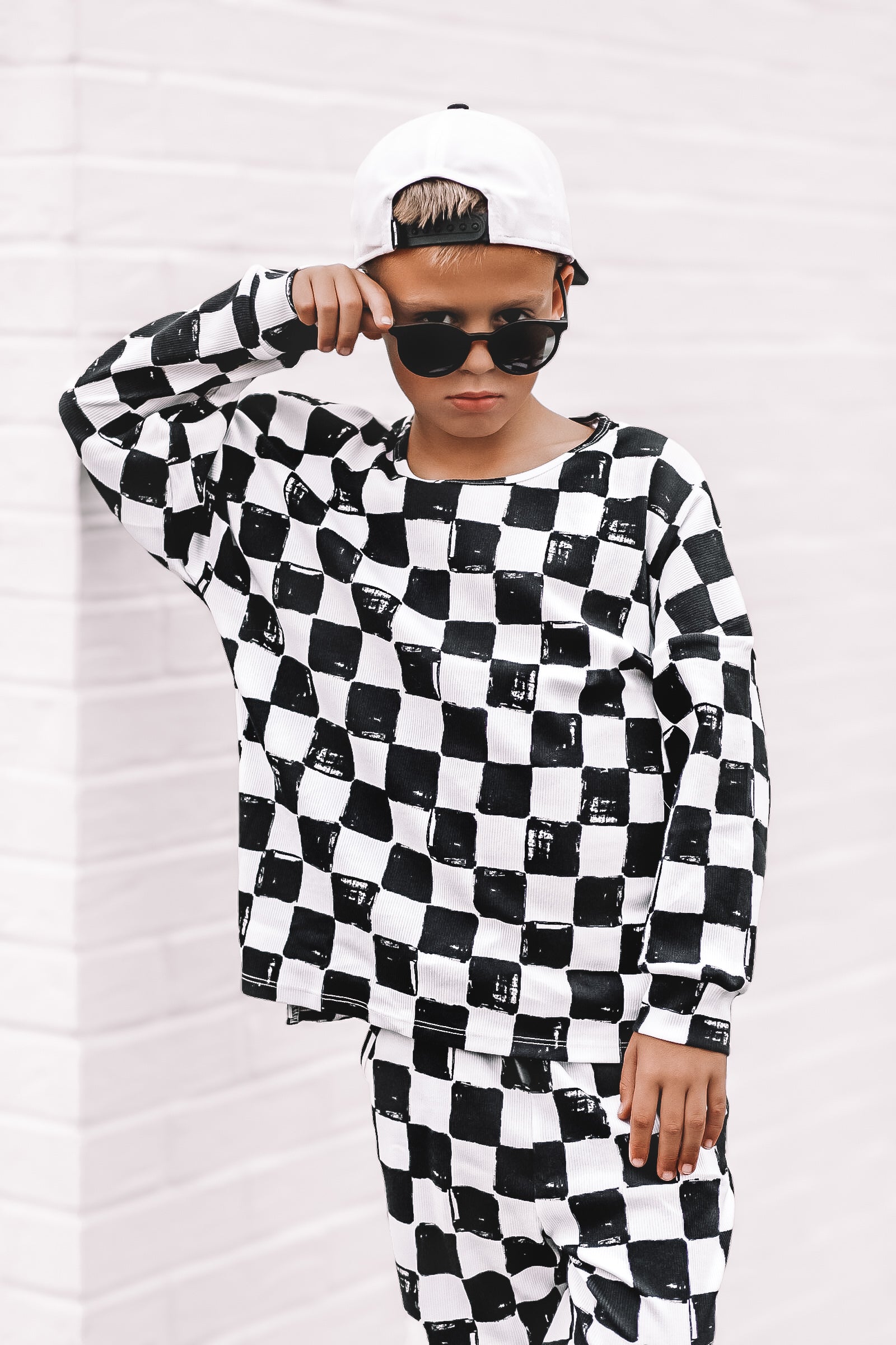 Our bestselling organic ribbed sets come with a long sleeve swoop rear top + jogger-style bottoms featuring : an elastic waist band, secured and adjustable drawstring and front pockets. Our organic cotton + spandex fabric is preshrunk to allow for the most true to size fit possible — even after laundering.