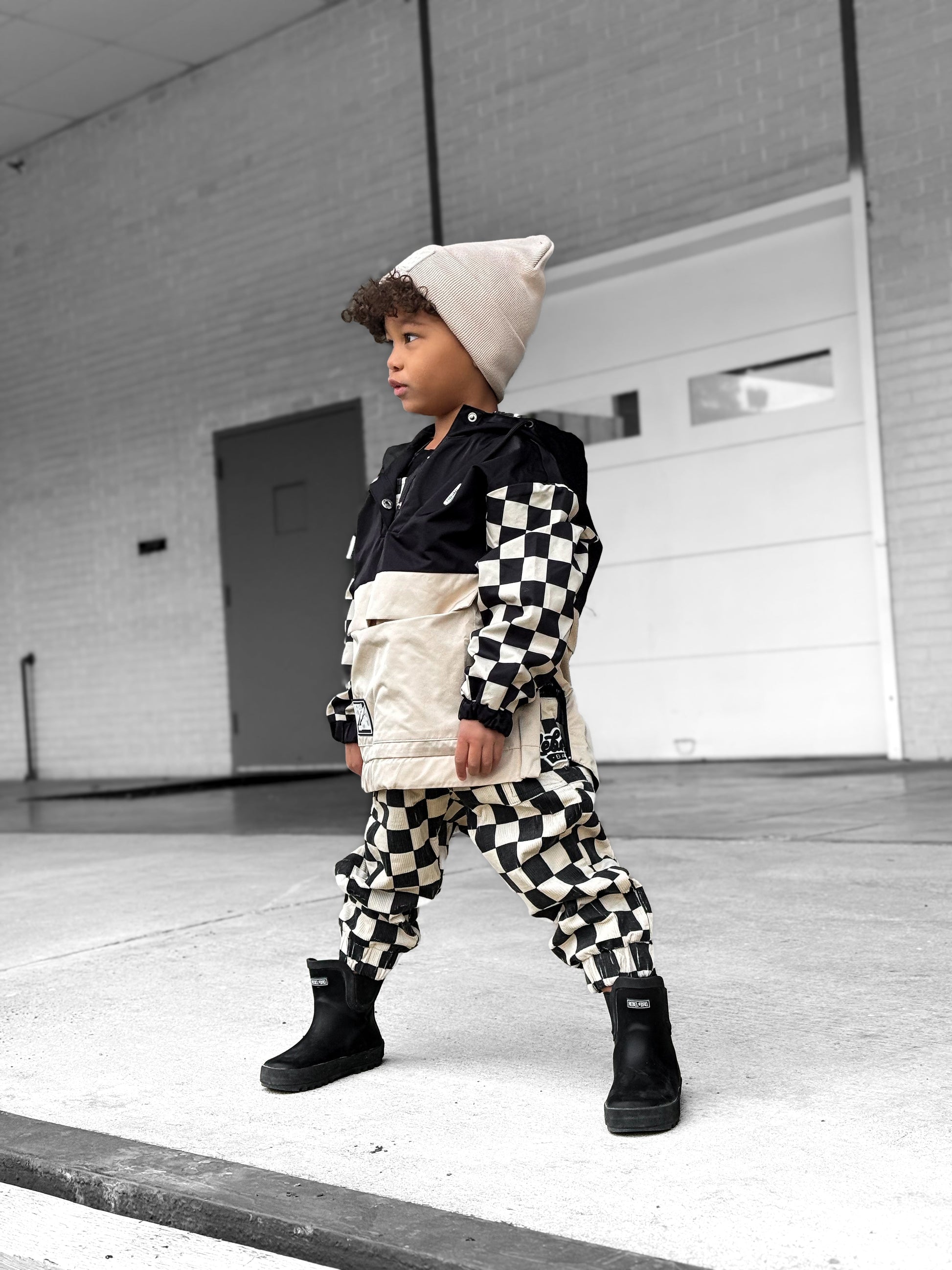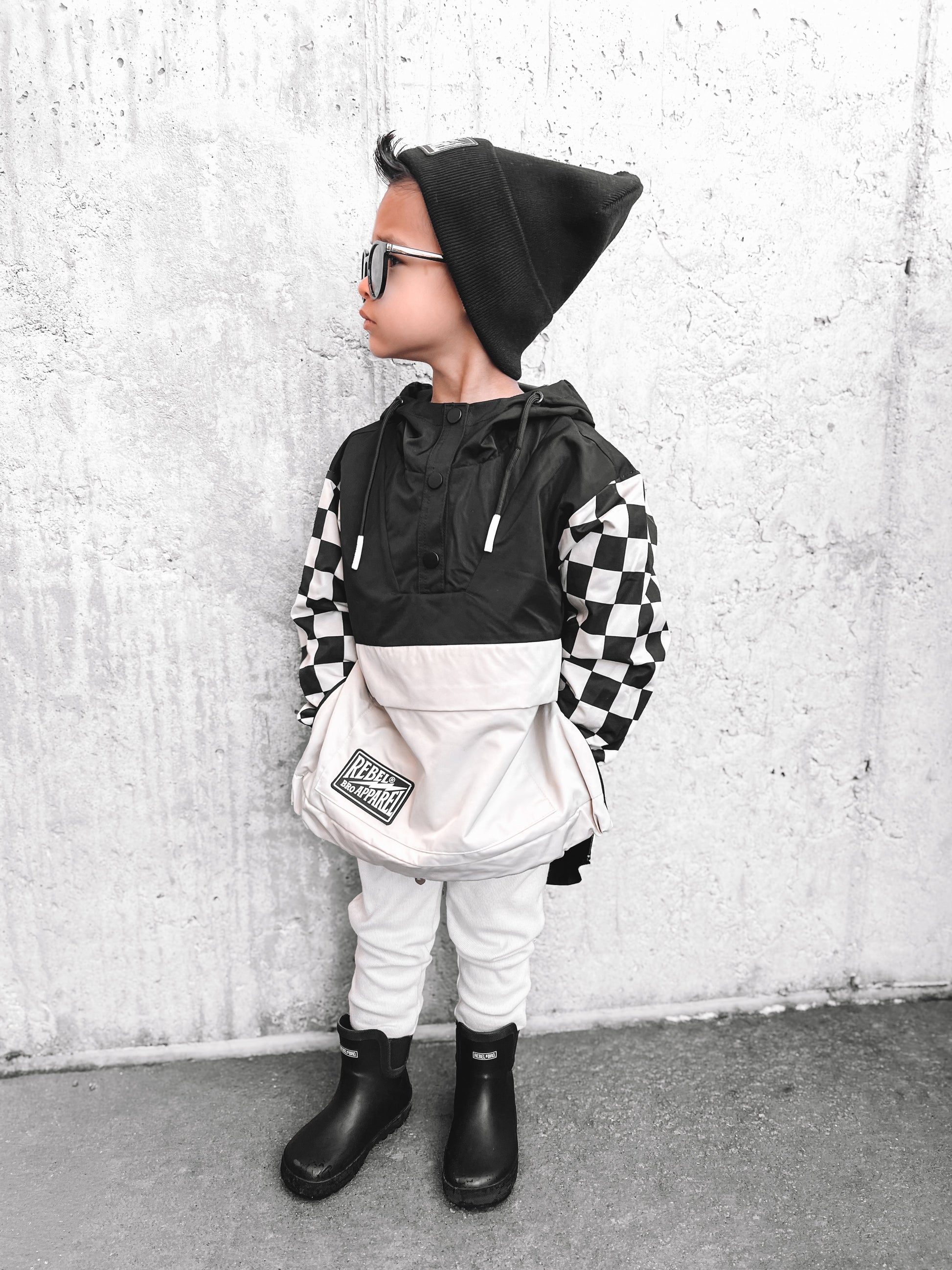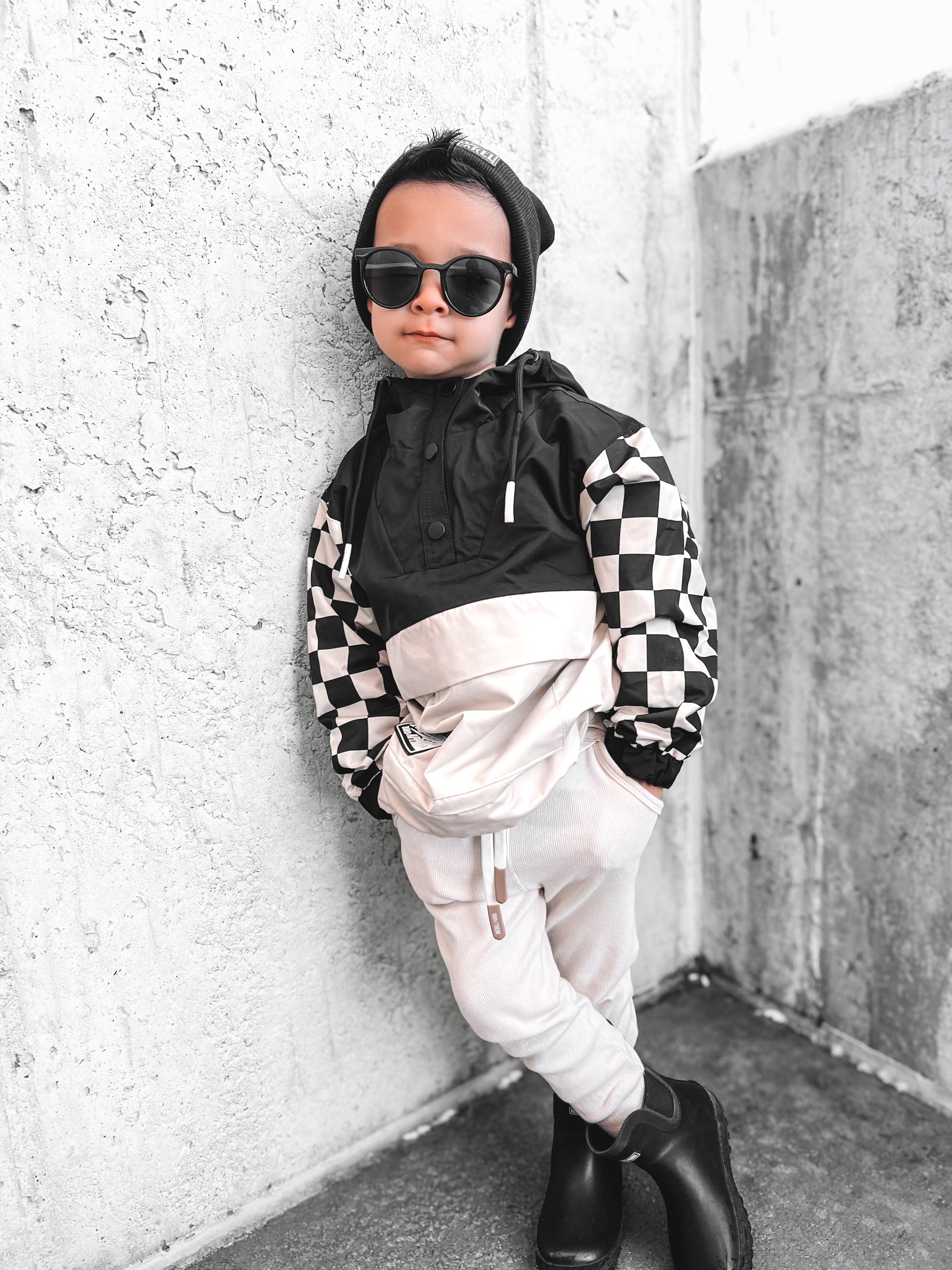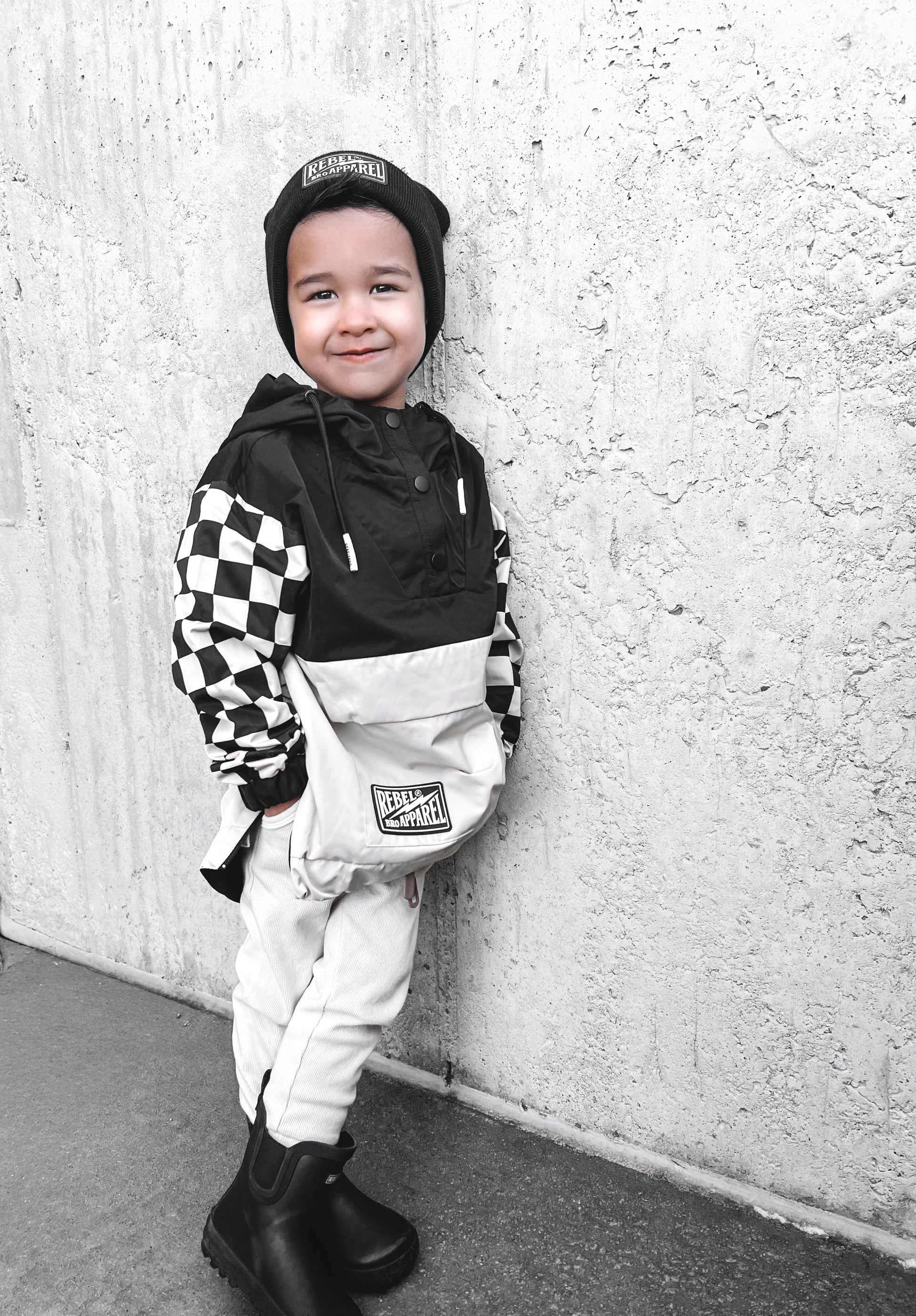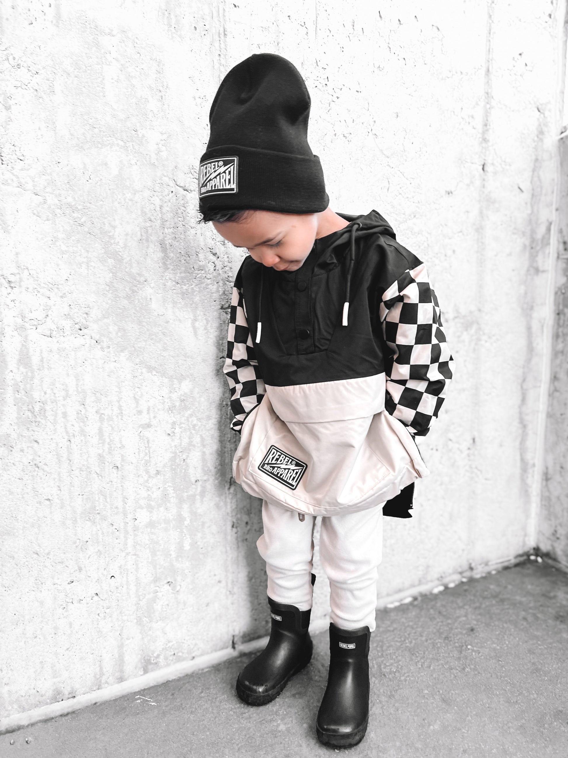 Pullover Windbreaker in Black/Oat