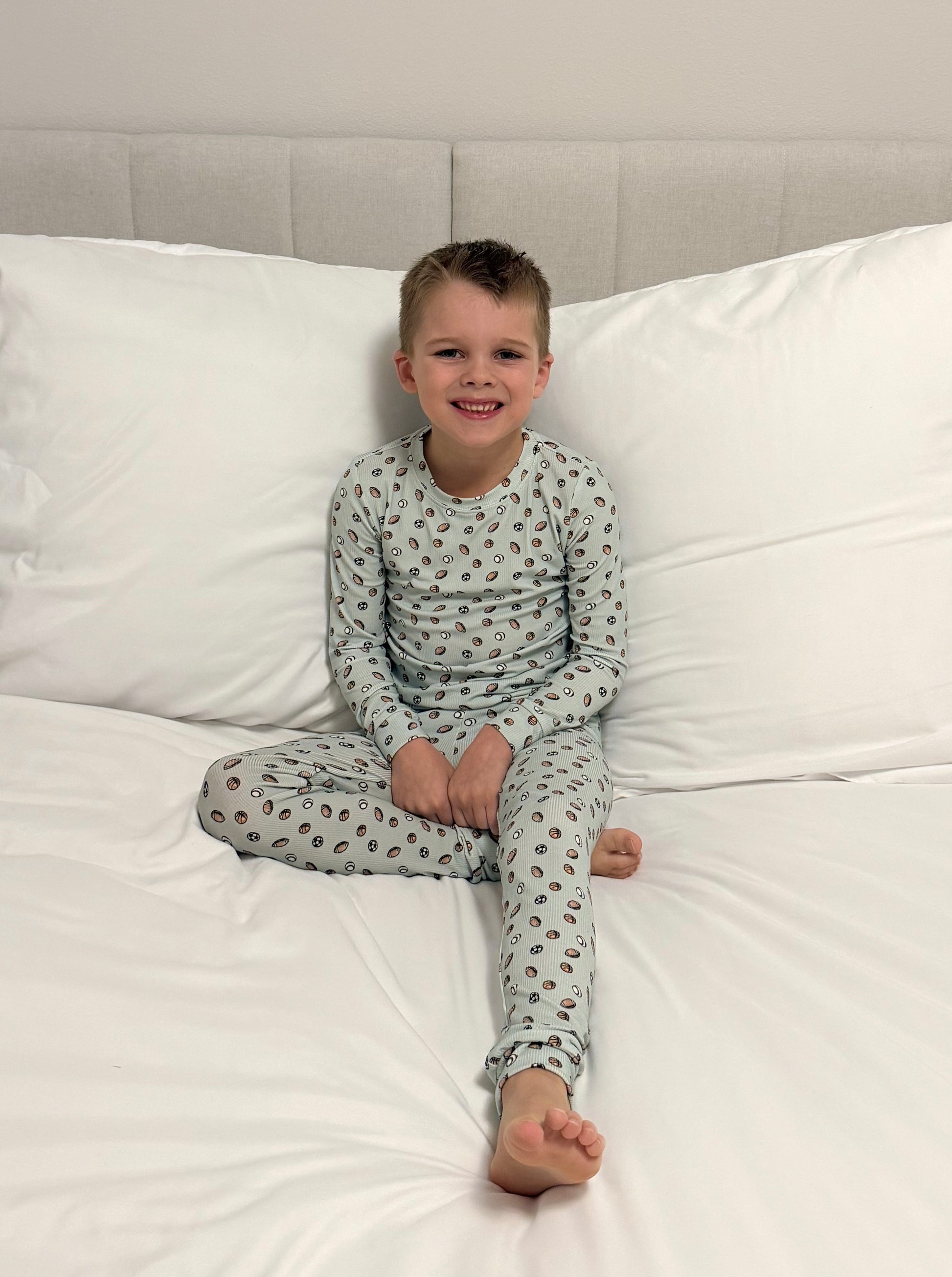Our two piece sets are perfect for year long wear. They are made with our bamboo and viscose blend, making them super soft and breathable on even the most sensitive skin.