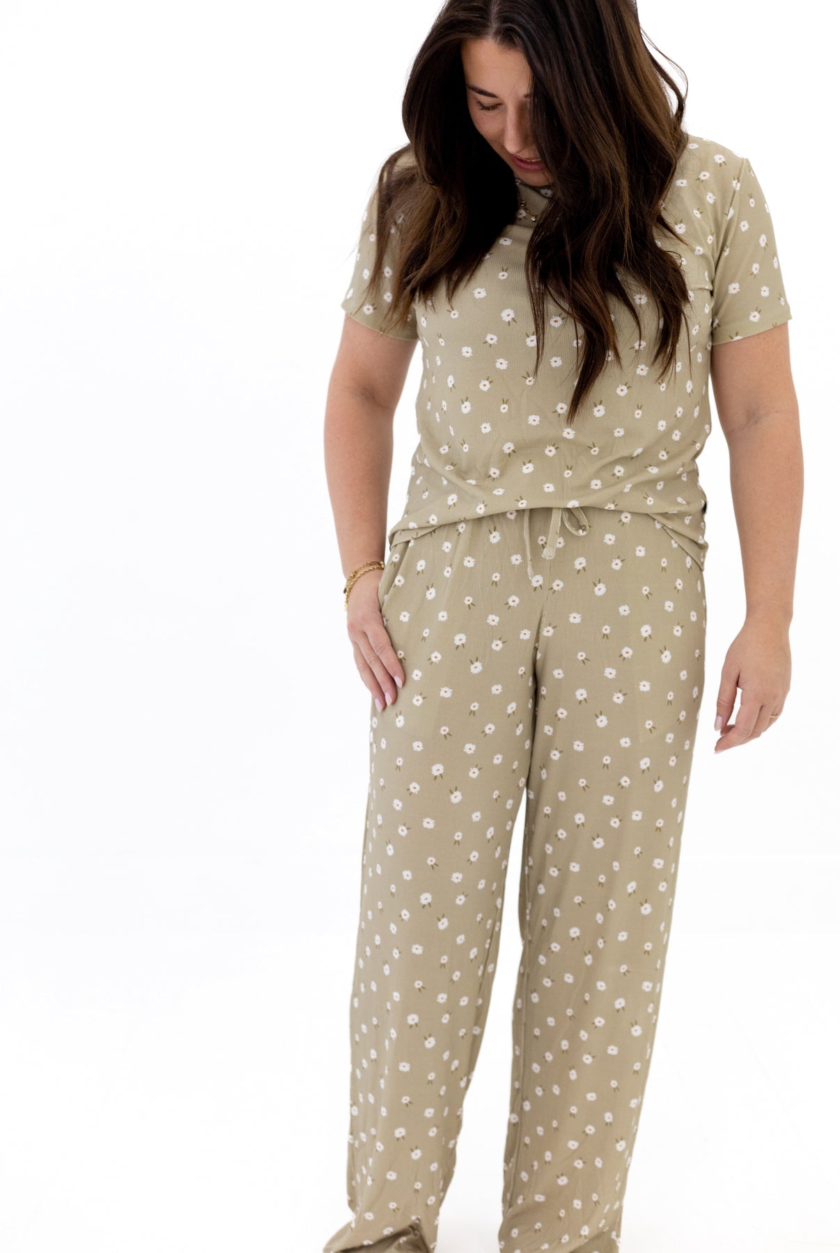 This is such a flattering fit! A simple wide leg pant paired with an oversized tee, you’ll want to live in this set. Plus, you can match your mini.