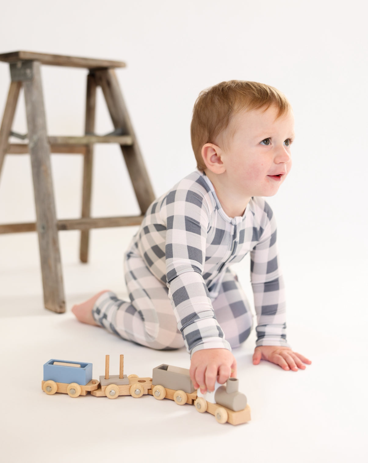 SLATE GINGHAM | ZIP ROMPER