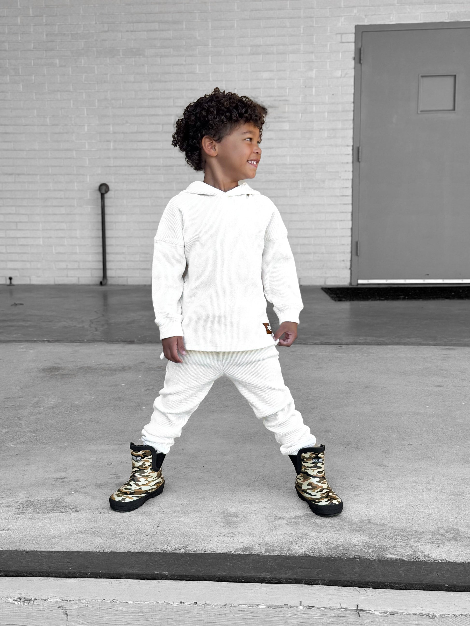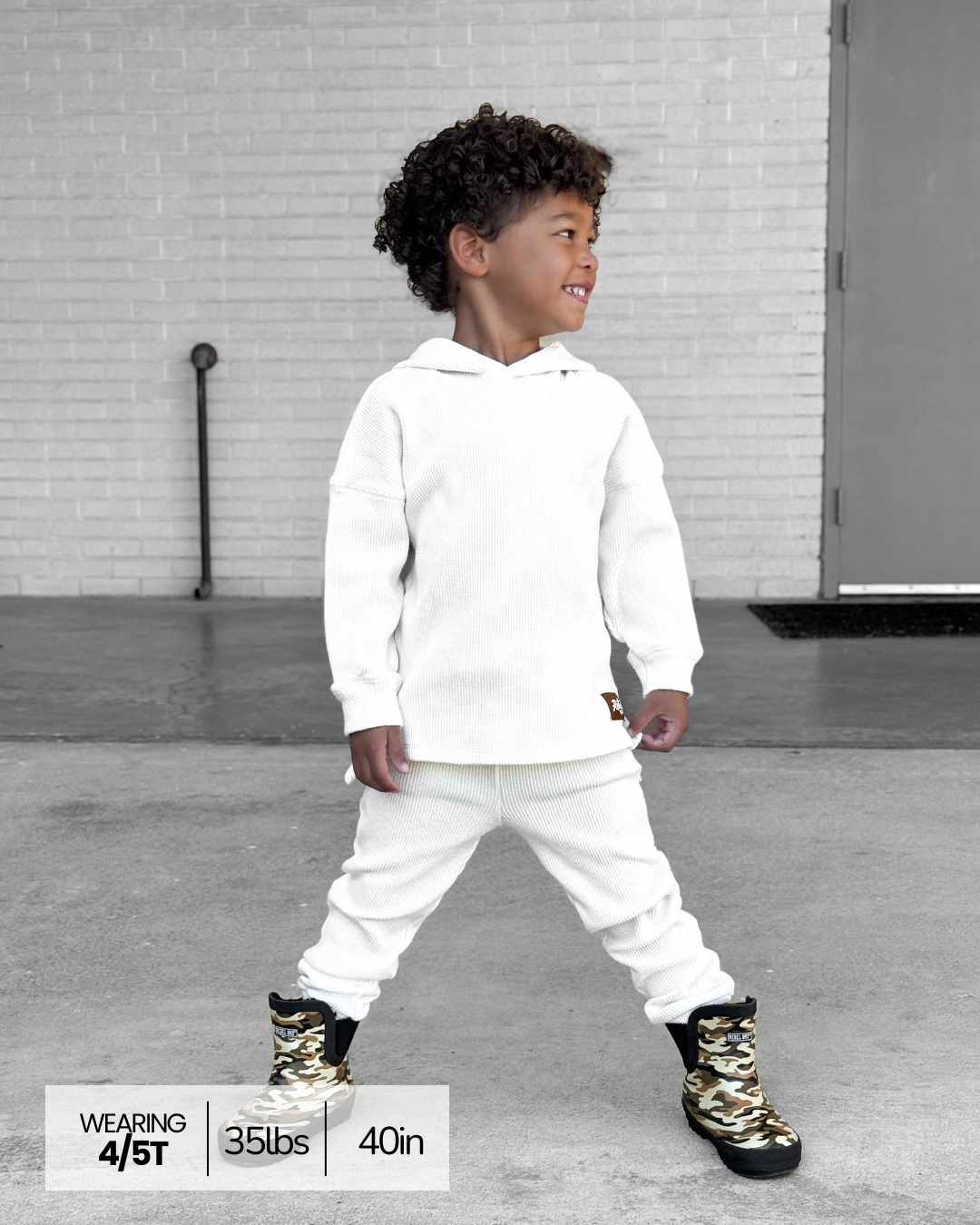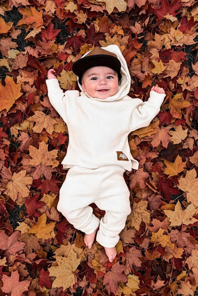 Organic, Breathable Comfort : Made with 95% organic waffled cotton + 5% spandex, giving the perfect blend of cozy texture and stretch that keeps up with playtime and downtime.