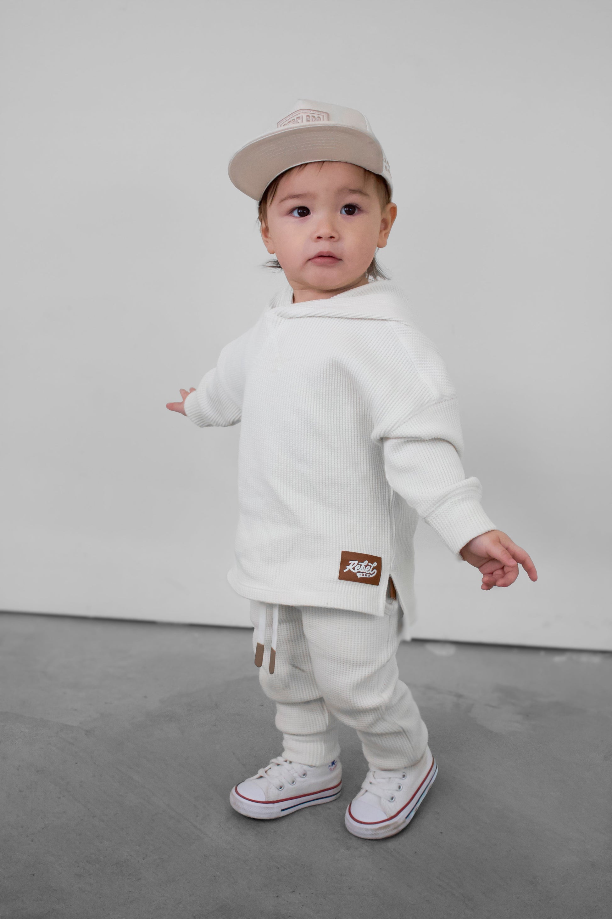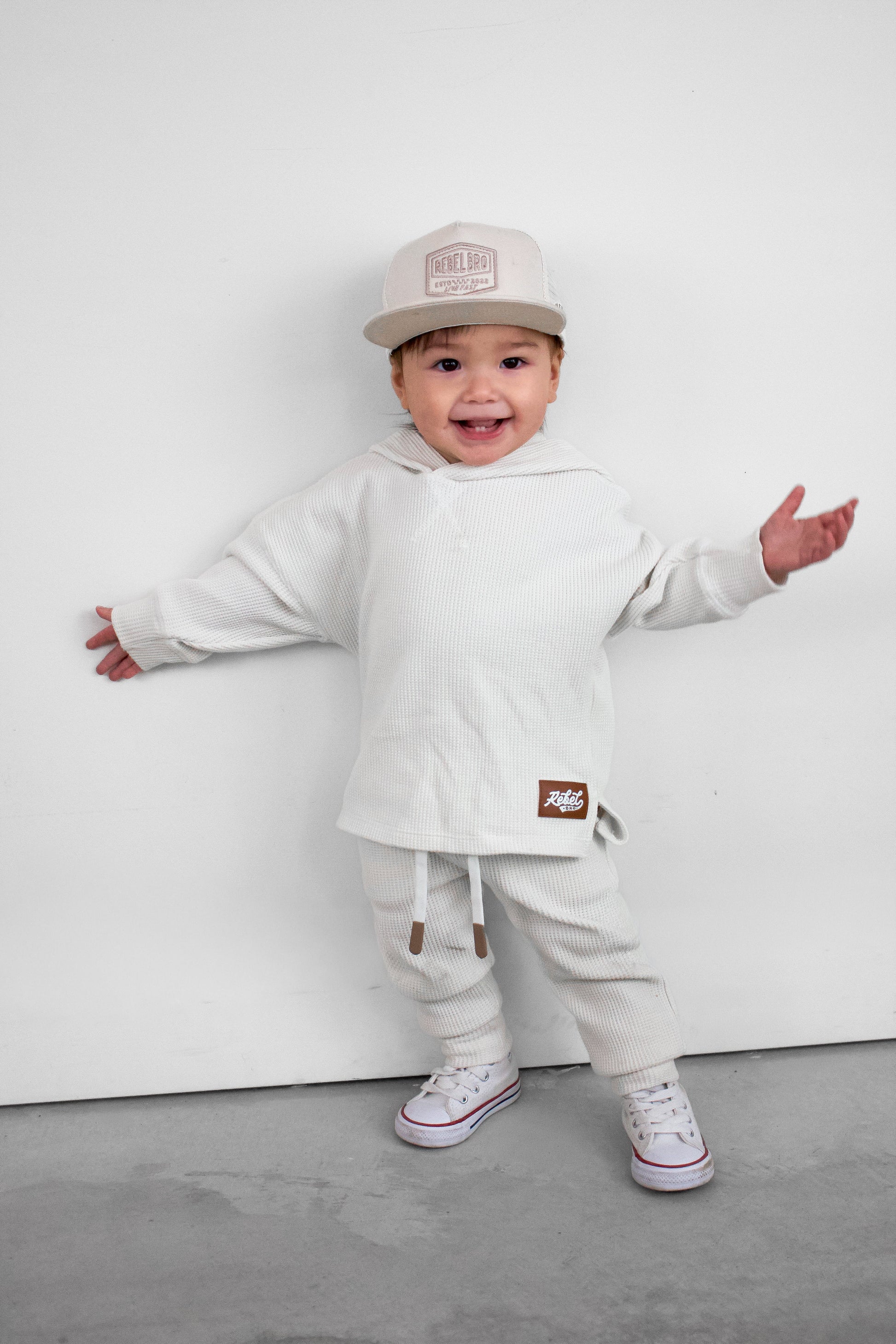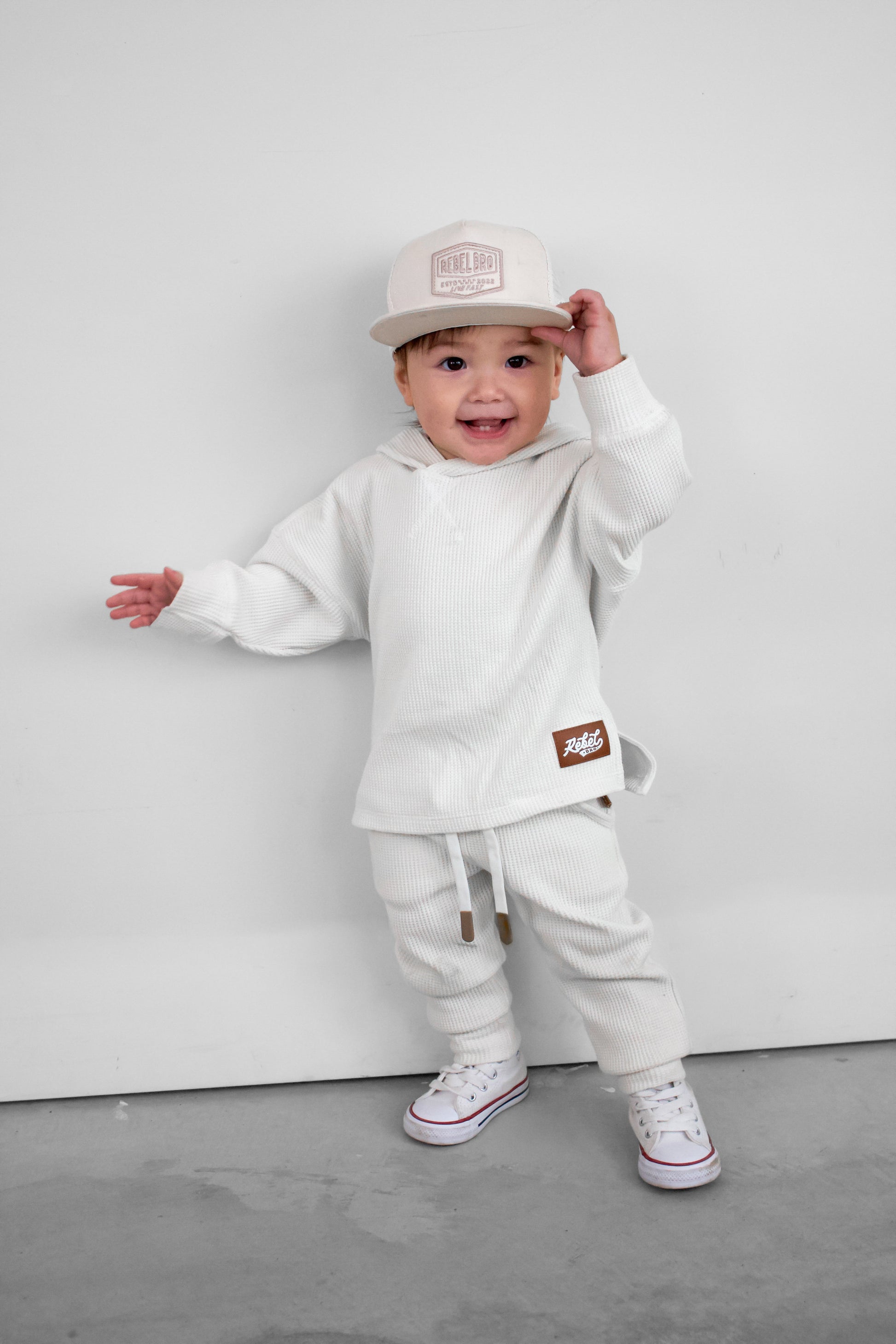 Organic, Breathable Comfort : Made with 95% organic waffled cotton + 5% spandex, giving the perfect blend of cozy texture and stretch that keeps up with playtime and downtime.